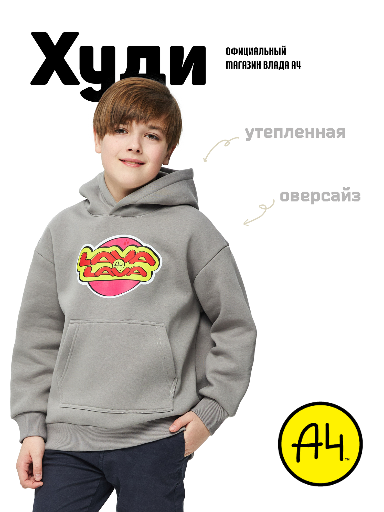 Купить Худи "LAVA LAVA" (серый) 2XS/ Влад A4 Бумага