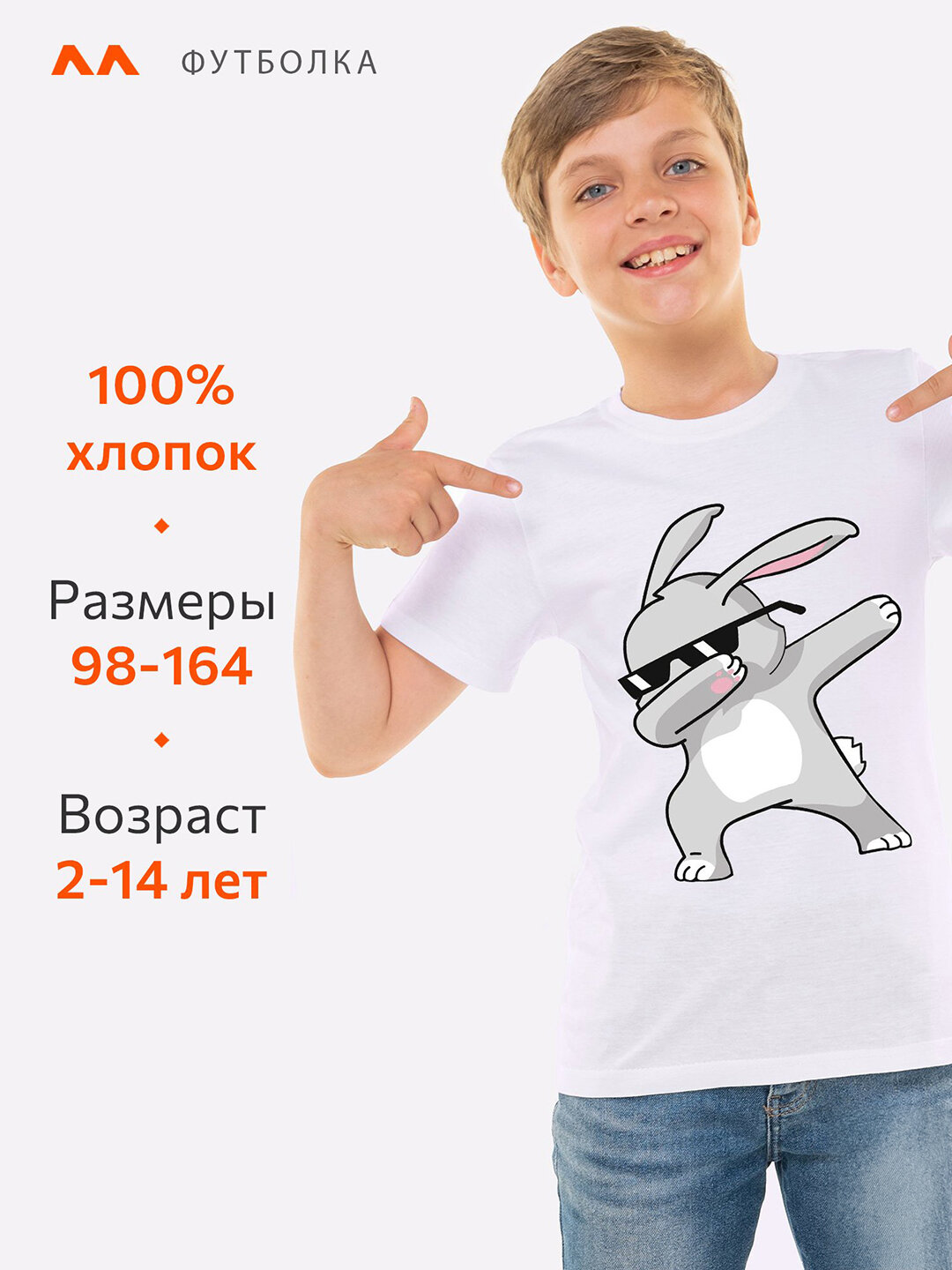 Купить Детская футболка с принтом для мальчика для девочки хлопок HappyFox, HF55011M размер 128, цвет дабстеп.кролик.белый