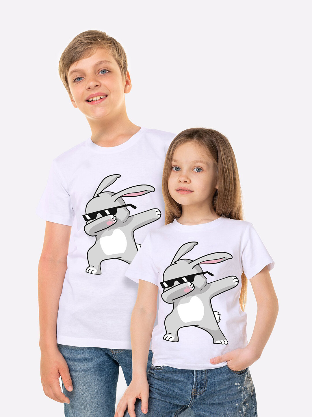 Детская футболка с принтом для мальчика для девочки хлопок HappyFox, HF55011M размер 128, цвет дабстеп.кролик.белый