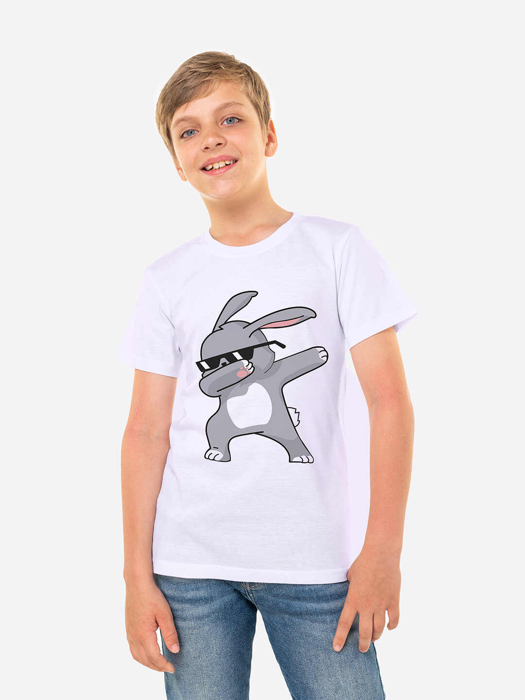 Купить Детская футболка с принтом для мальчика для девочки хлопок HappyFox, HF55011M размер 152, цвет дабстеп.кролик.белый