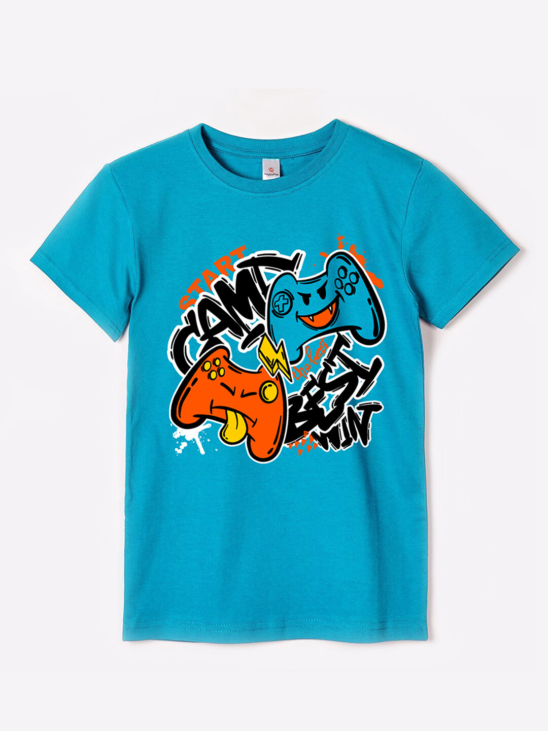 Купить Футболка с принтом детская хлопковая HappyFox HF55011M game.бирюза 128