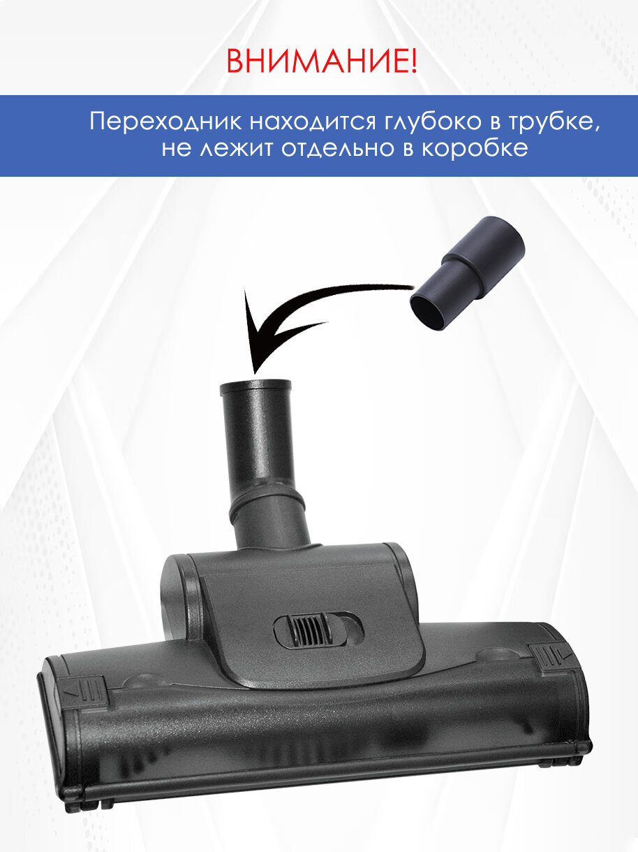 | Минусы: | Переходник на 32 гораздо лучше держится на трубе, чем в щётке. Могли бы сделать с фиксацией переходника внутри щётки, чтобы не приходилось постоянно снимать его с трубы. |