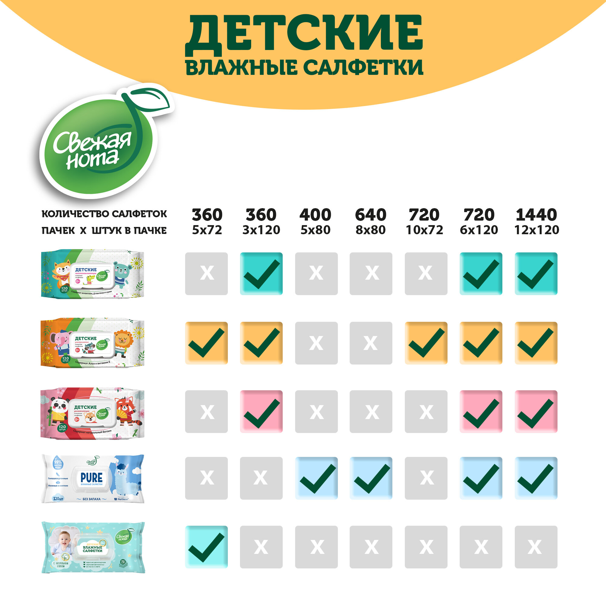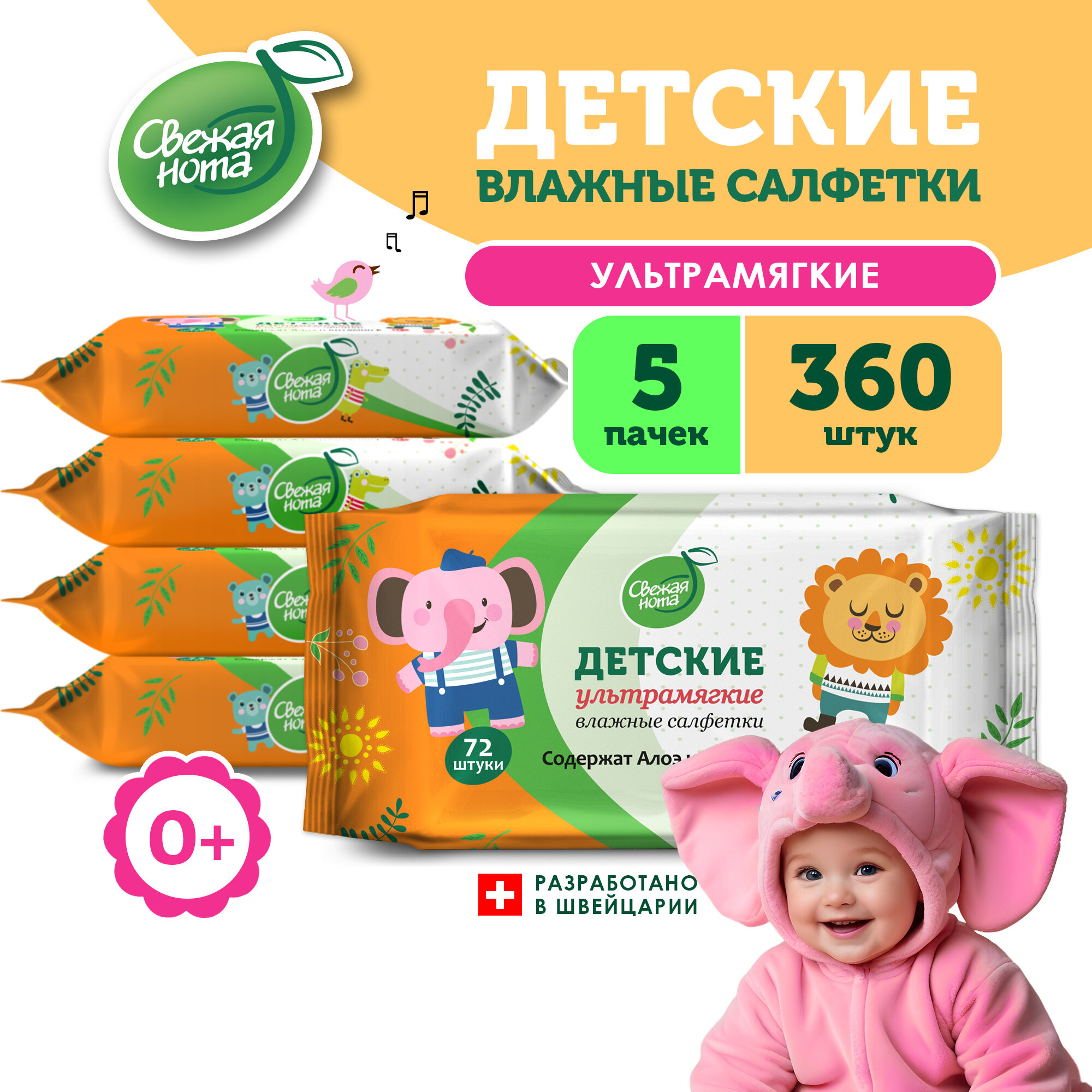 Свежая нота Влажные салфетки детские Ультрамягкие с экстрактом Алоэ Вера и Витамином E, 360 шт. (72х5) интересное: