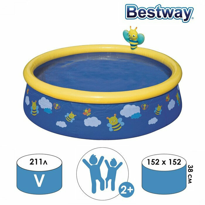 Бассейн Bestway "Fast Set",размеры 152 x 38 см, с распылителем, от 2 лет, цвет микс, 57326