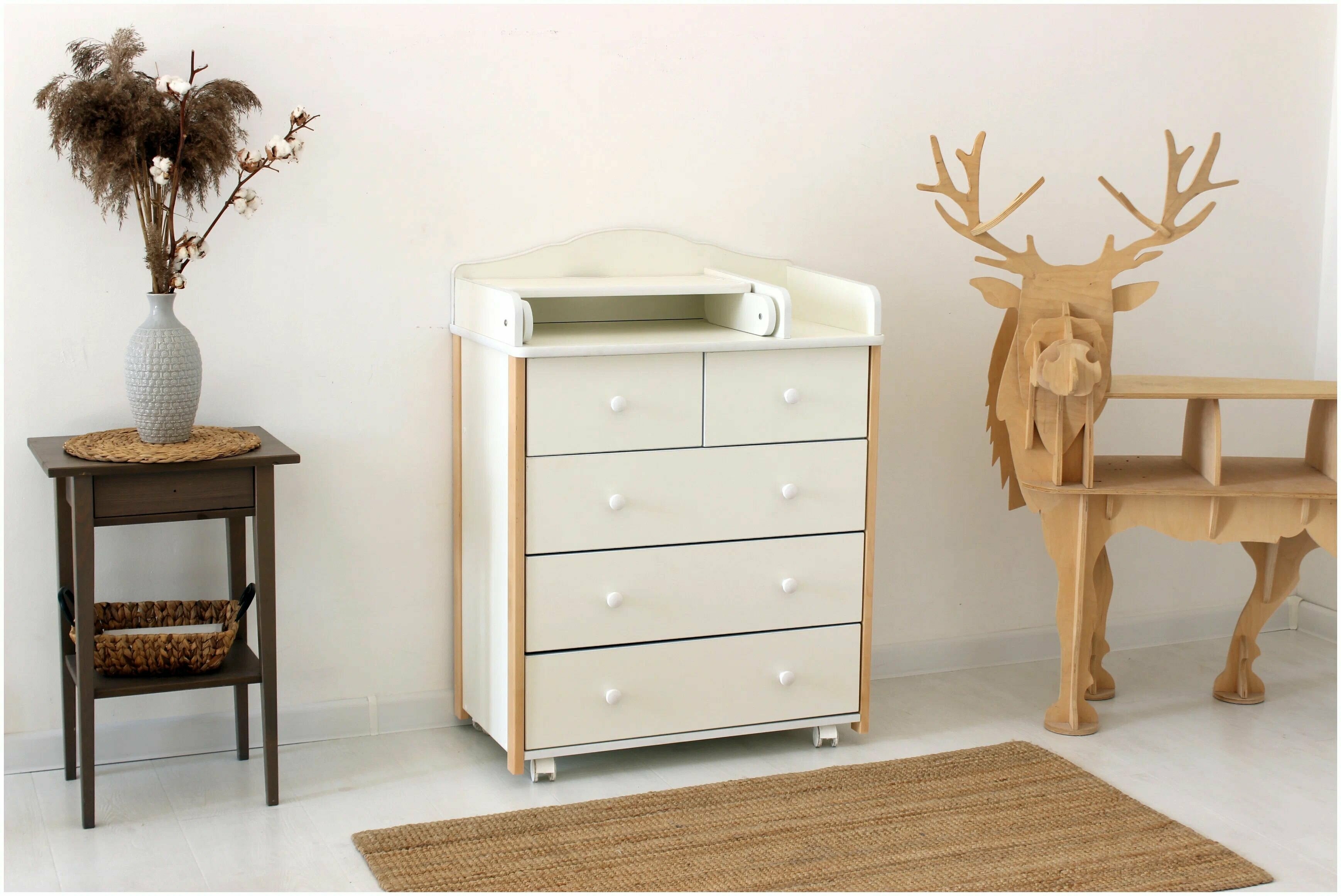 Комод Lux 5 ящиков, белый/бук, со откидной пеленальной доской интересное: