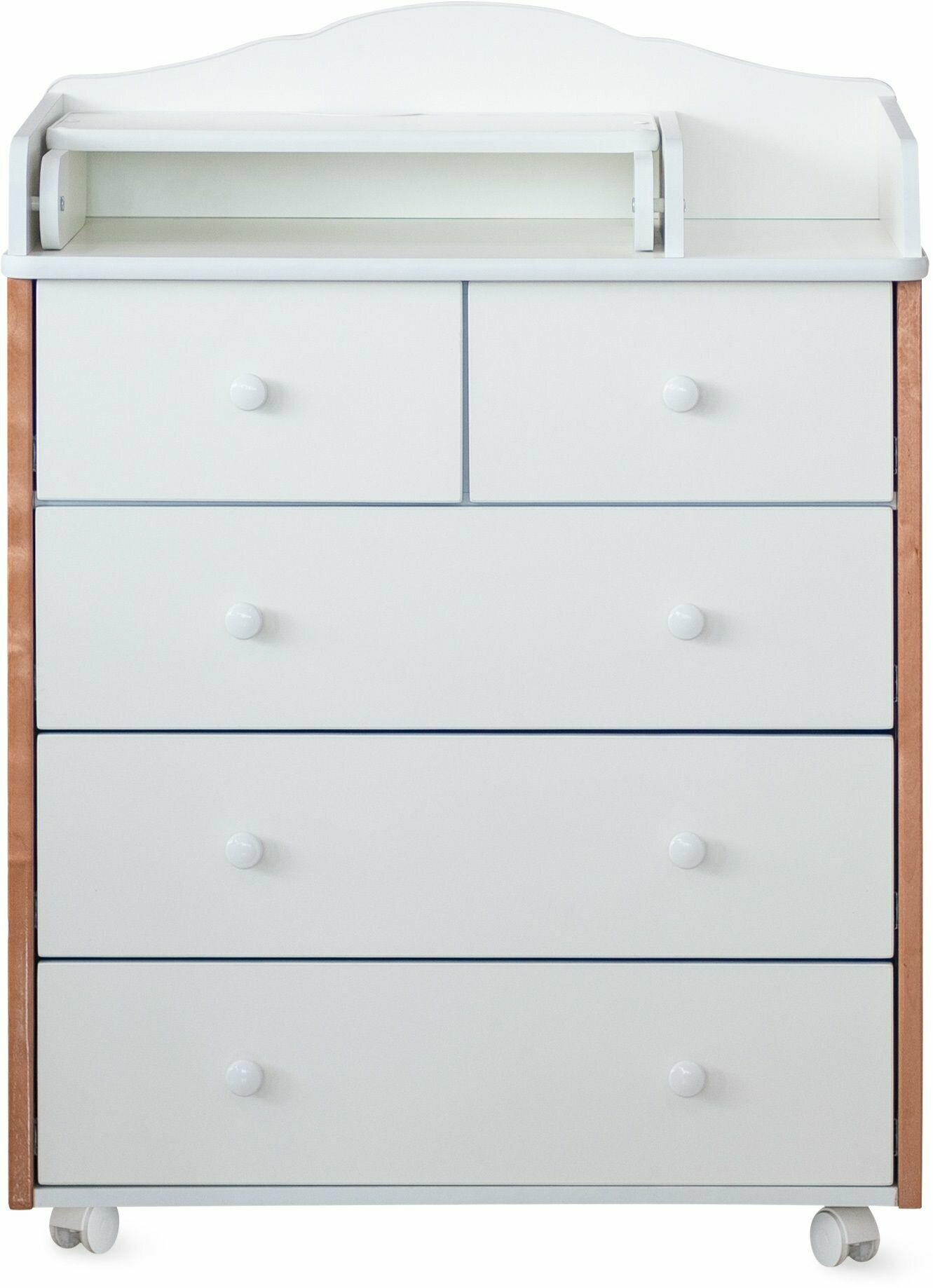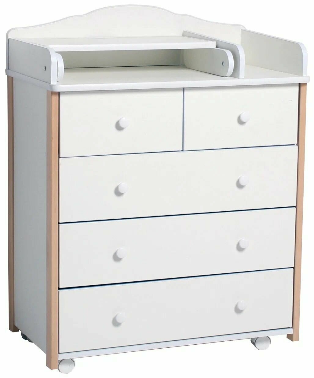 Купить Комод Lux 5 ящиков, белый/бук, со откидной пеленальной доской