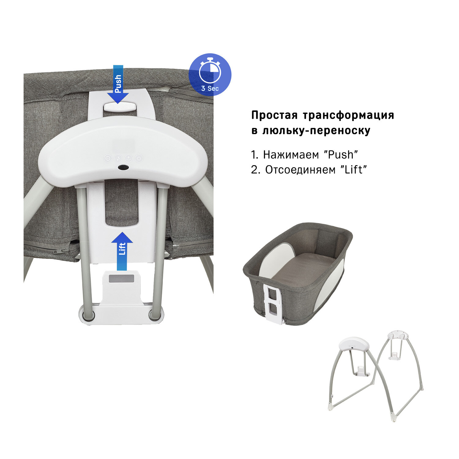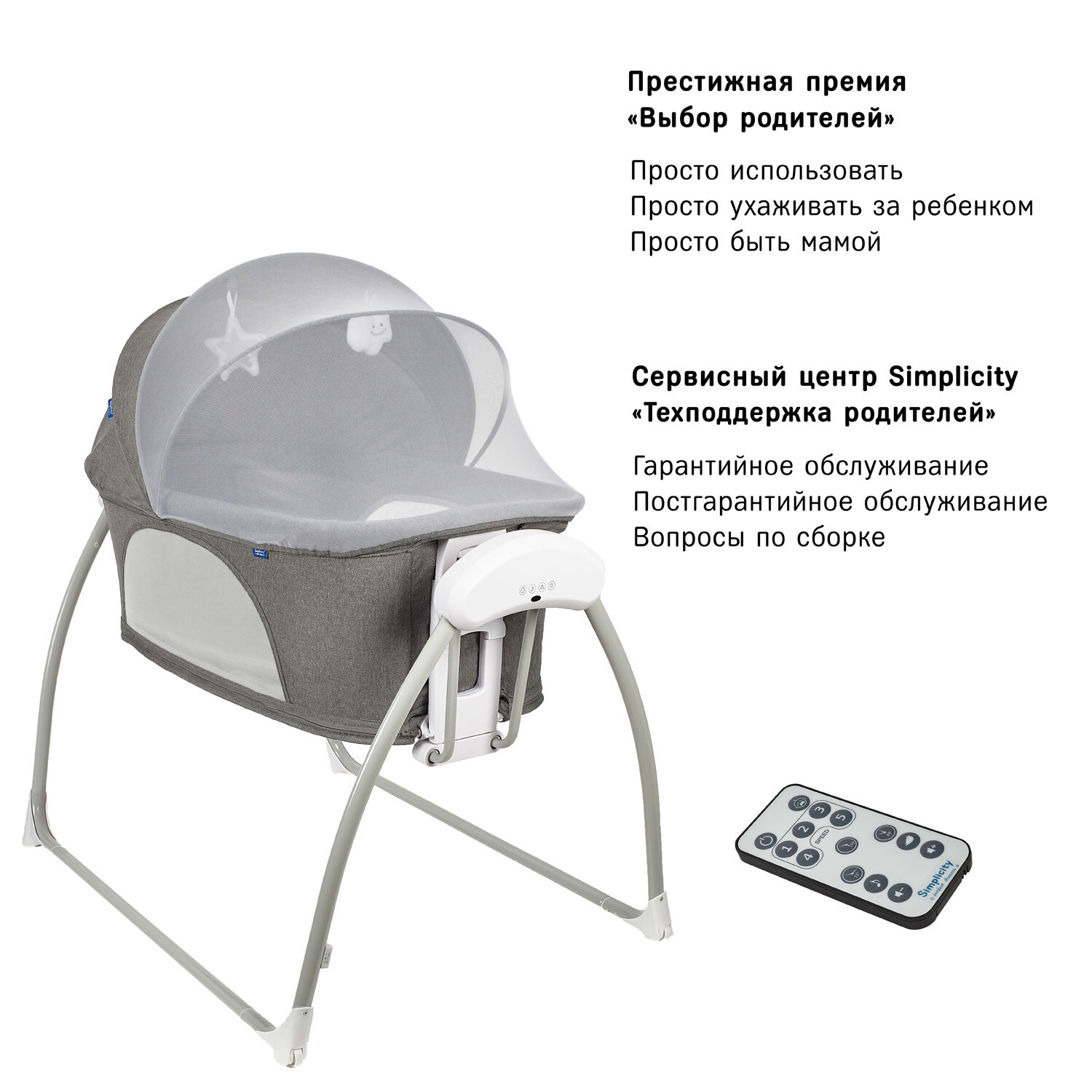 Колыбель детская с электронной системой укачивания Simplicity 3090 Elite (Gray) интересное: