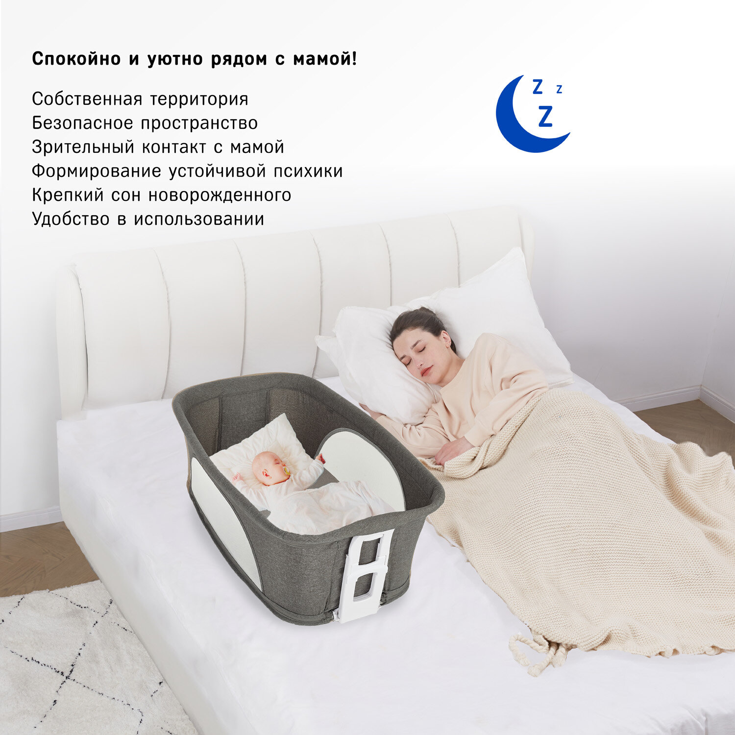 Приставная кроватка люлька для новорожденных 5в1 Lionelo Thomi Plus детская колыбель