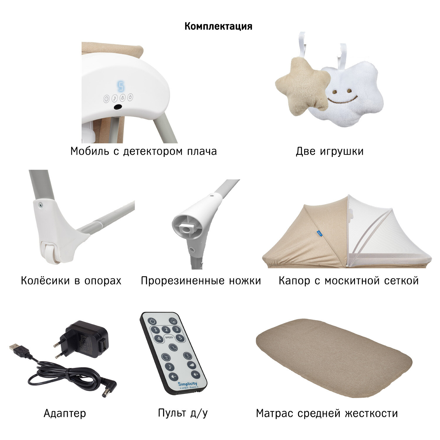 Колыбель детская с электронной системой укачивания Simplicity 3090 Elite (Beige) интересное: