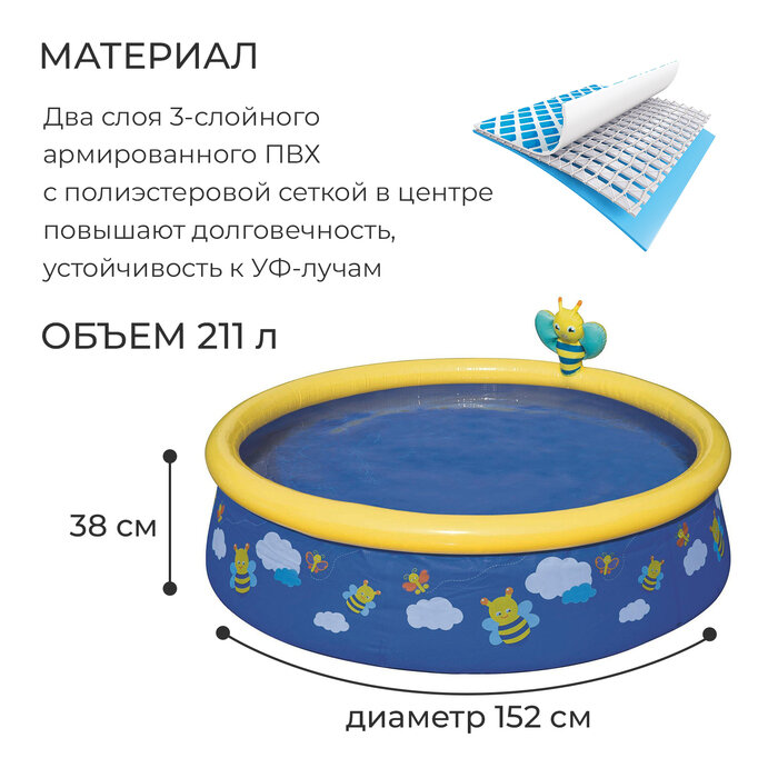 СохранитьБассейн Fast Set,152 x 38 см, с распылителем, от 2 лет, цвет микс, 57326 Bestway интересное: