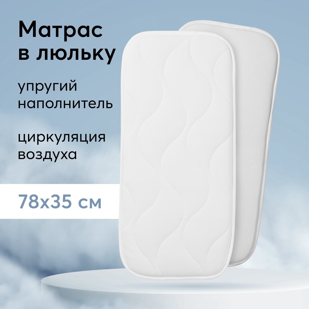 95034, Универсальный матрас в коляску для новорожденных Happy Baby детский беспружинный 81x38 см, белый интересное: