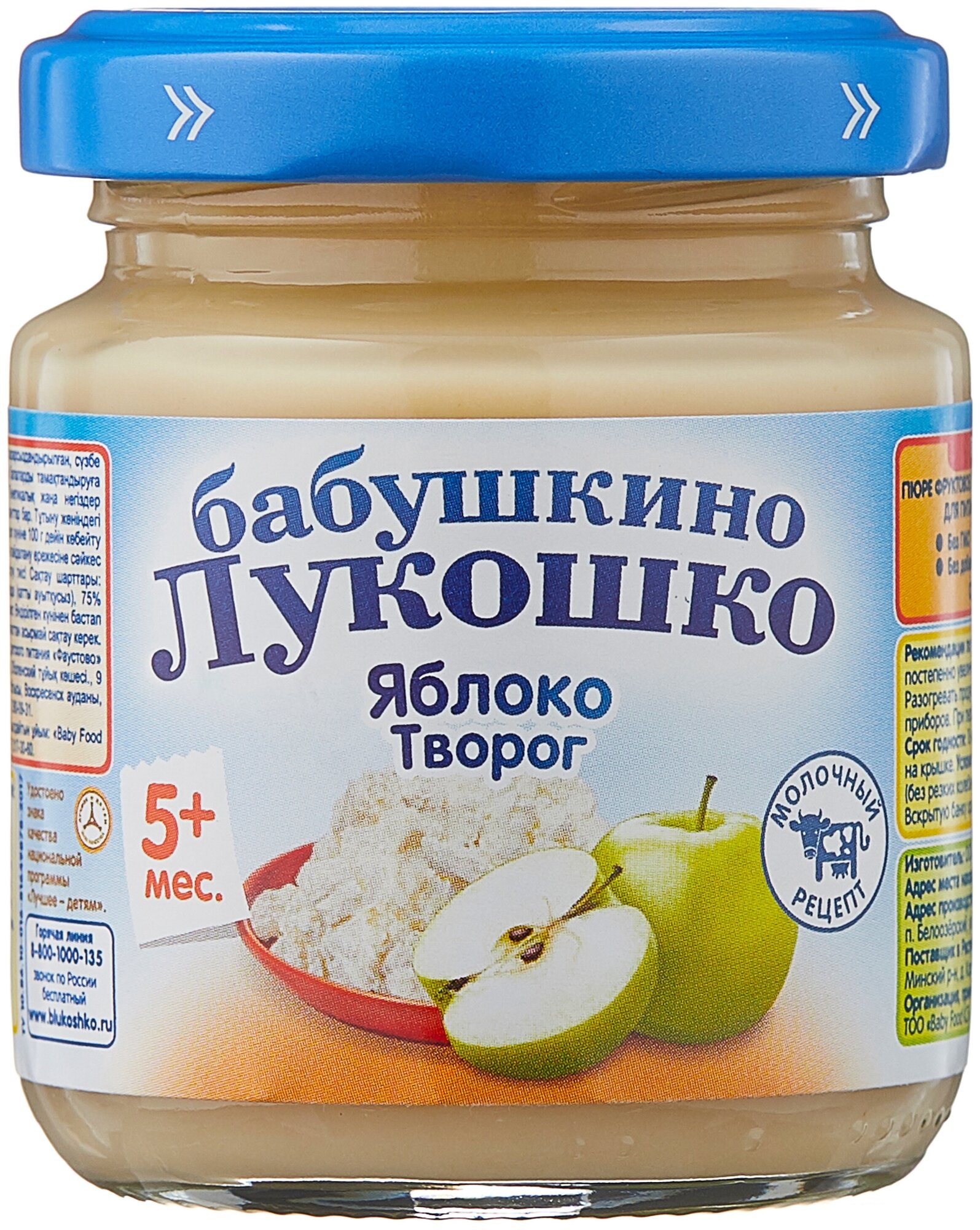 Пюре Бабушкино Лукошко Яблоко с творогом, стеклянная банка, 100 г, 6 шт. интересное: