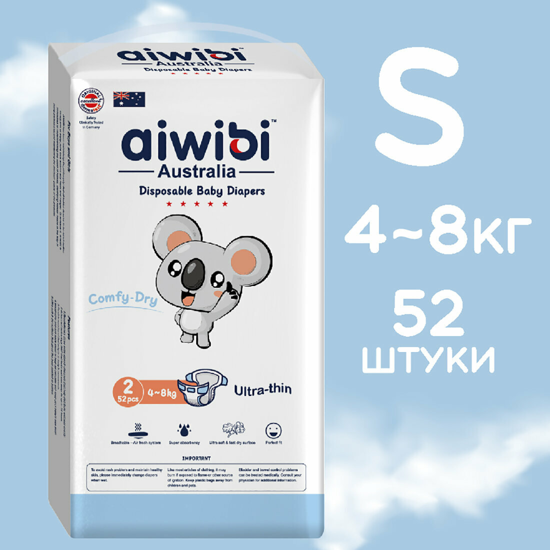Купить Подгузники детские AIWIBI Comfy dry S (4-8 кг) 52шт айвиби, памперсы