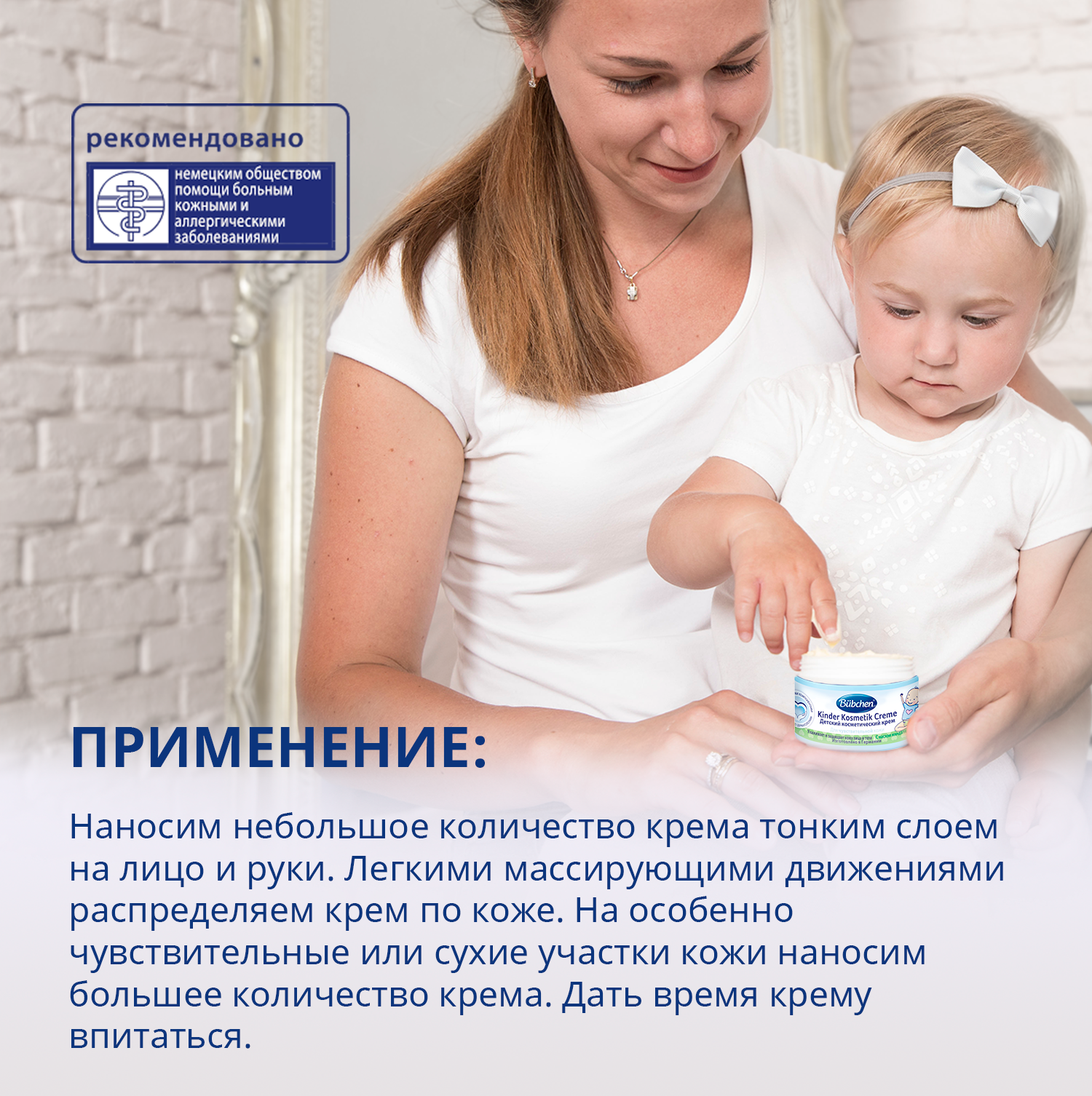 | Способ применения | Нанести небольшое количество крема тонким слоем на лицо и ручки малыша. Легкими массирующими движениями распределить крем по коже. На особенно чувствительные или сухие участки кожи нанести большее количество продукта. Дать впитаться. |