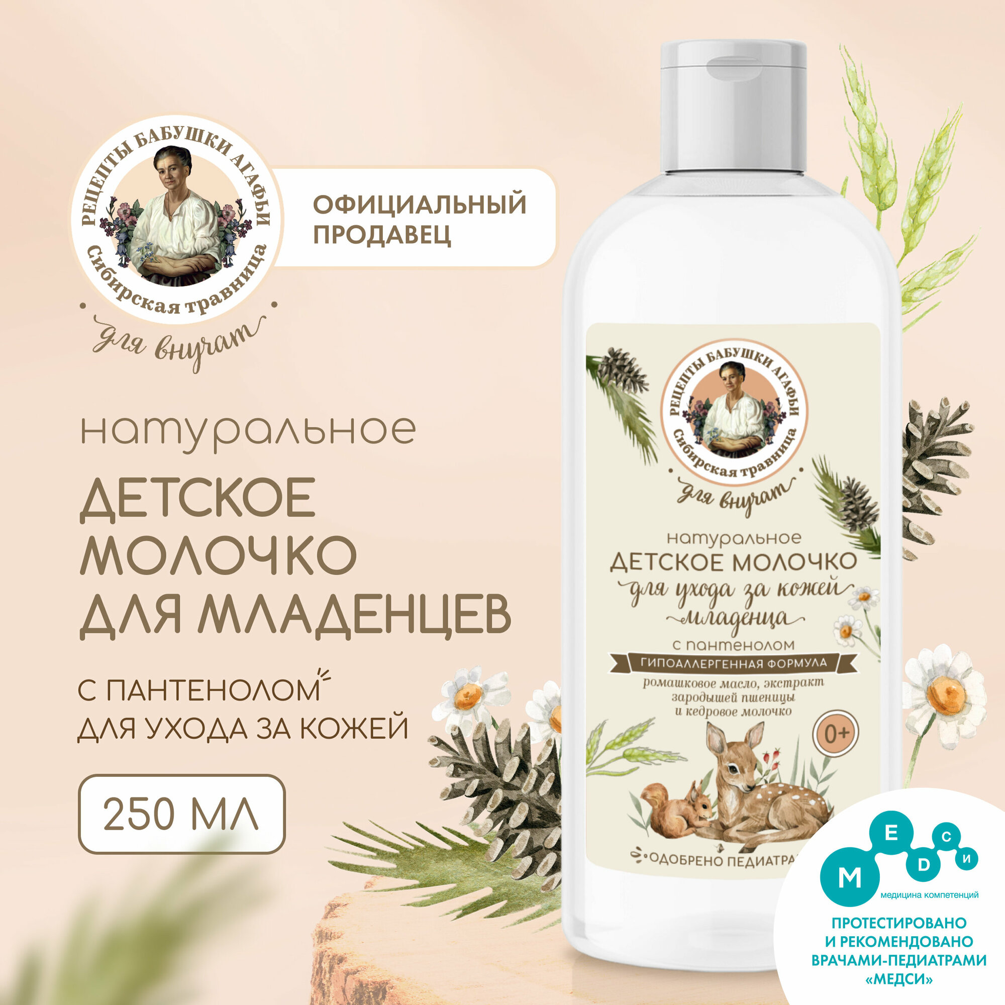 Детское молочко с пантенолом для ухода за кожей младенца Рецепты бабушки Агафьи Сибирская травница Для Внучат "Натуральное. 0+", 250 мл интересное: