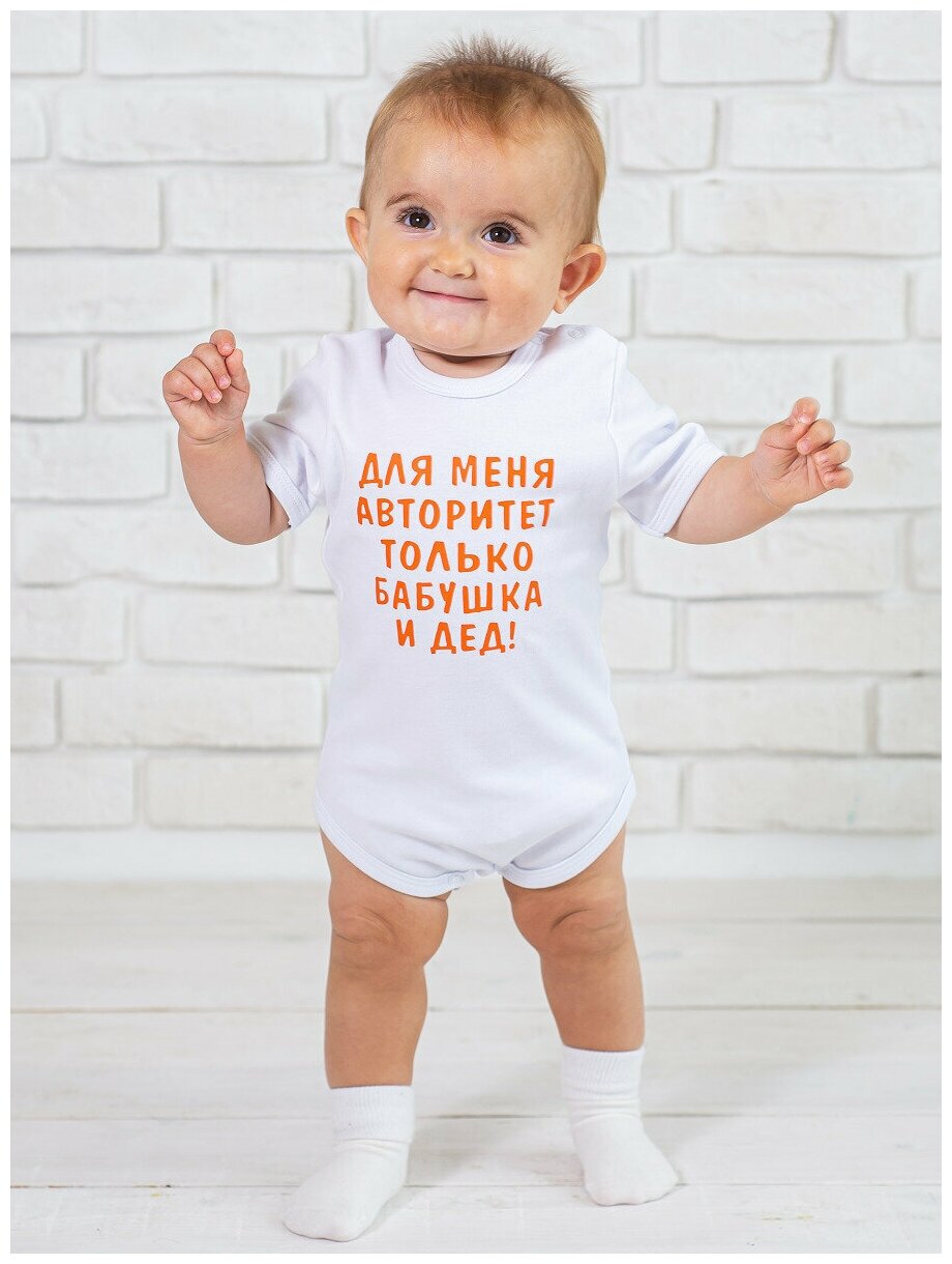 Купить Боди Валерия Мура белый "Для меня авторитет только бабушка и дед!", 74