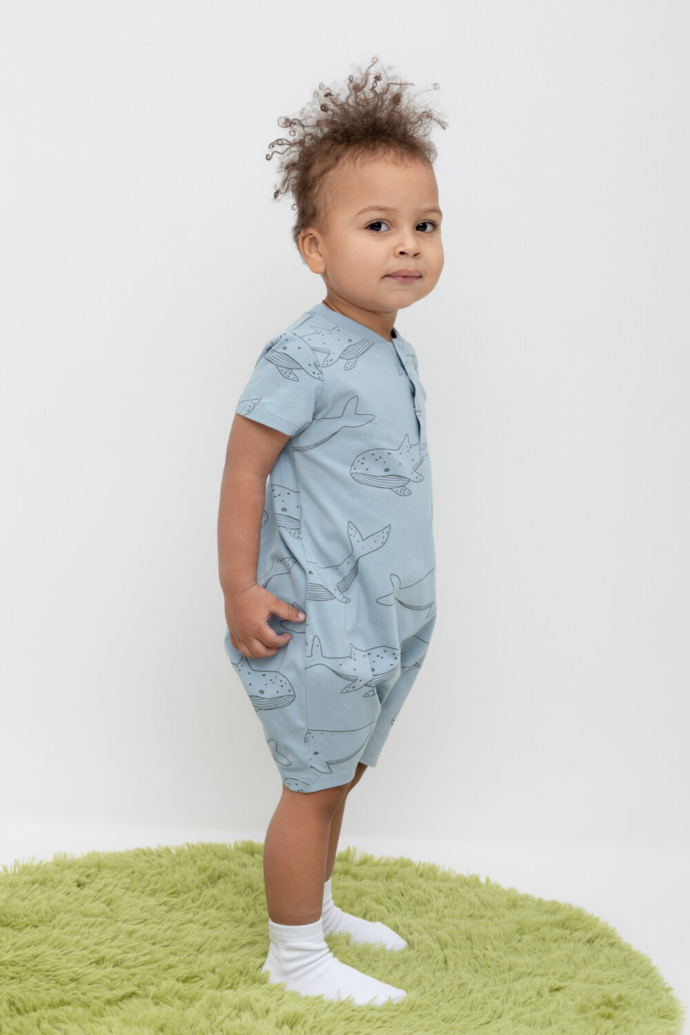Песочник для мальчика из натурального хлопка, Crockid КР 6501/пыльно-синий,большие киты к470 р 52/80