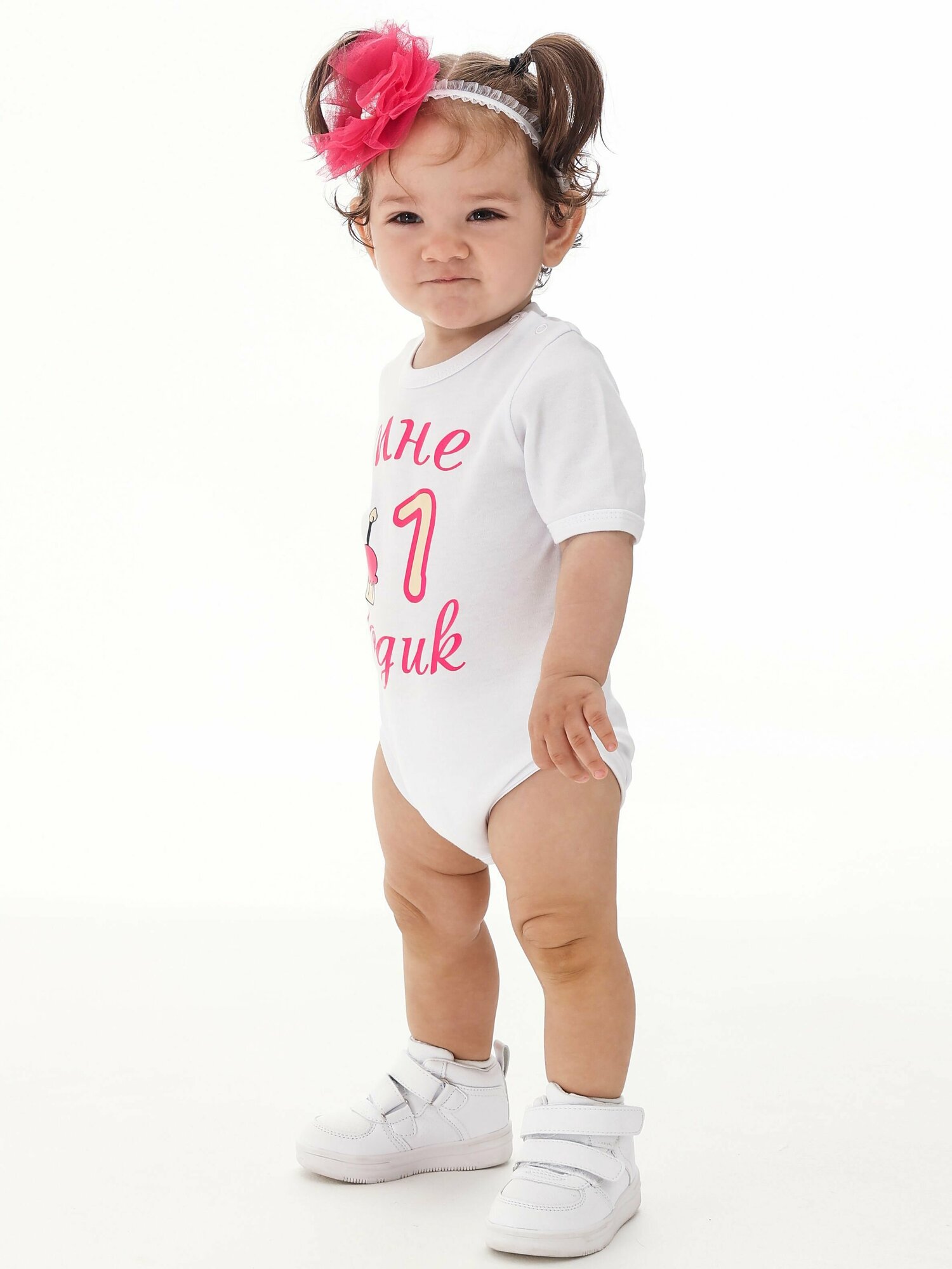 Боди Валерия Мура белый с роз.неоном "Мой 1 день рождения", 80