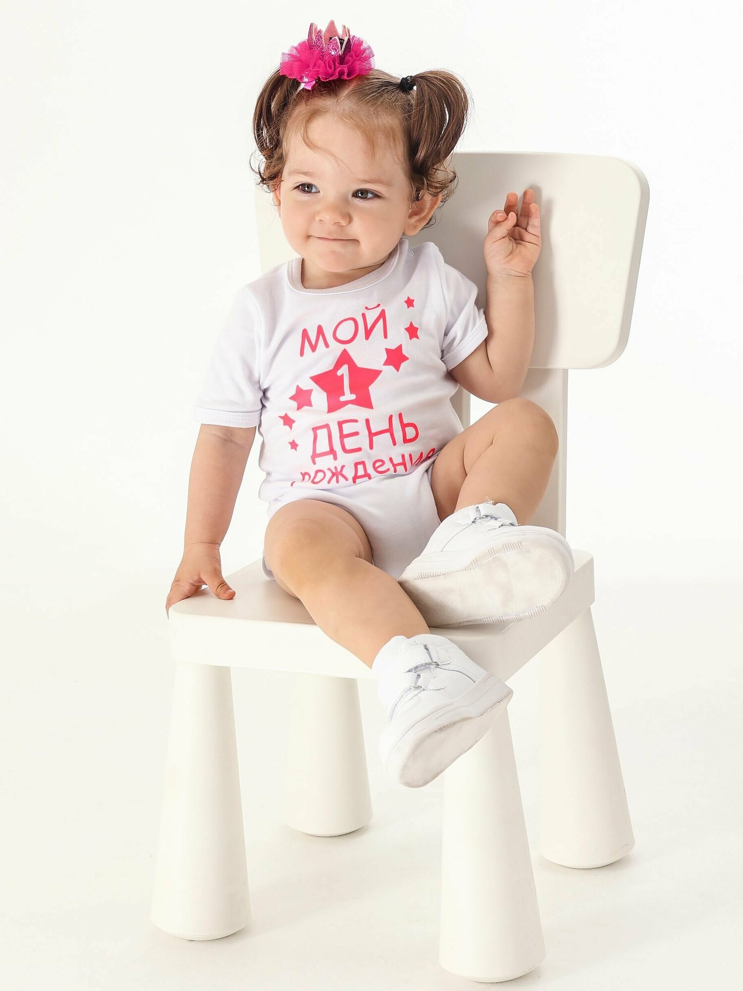 Боди Валерия Мура белый с роз.неоном "Мой 1 день рождения", 74