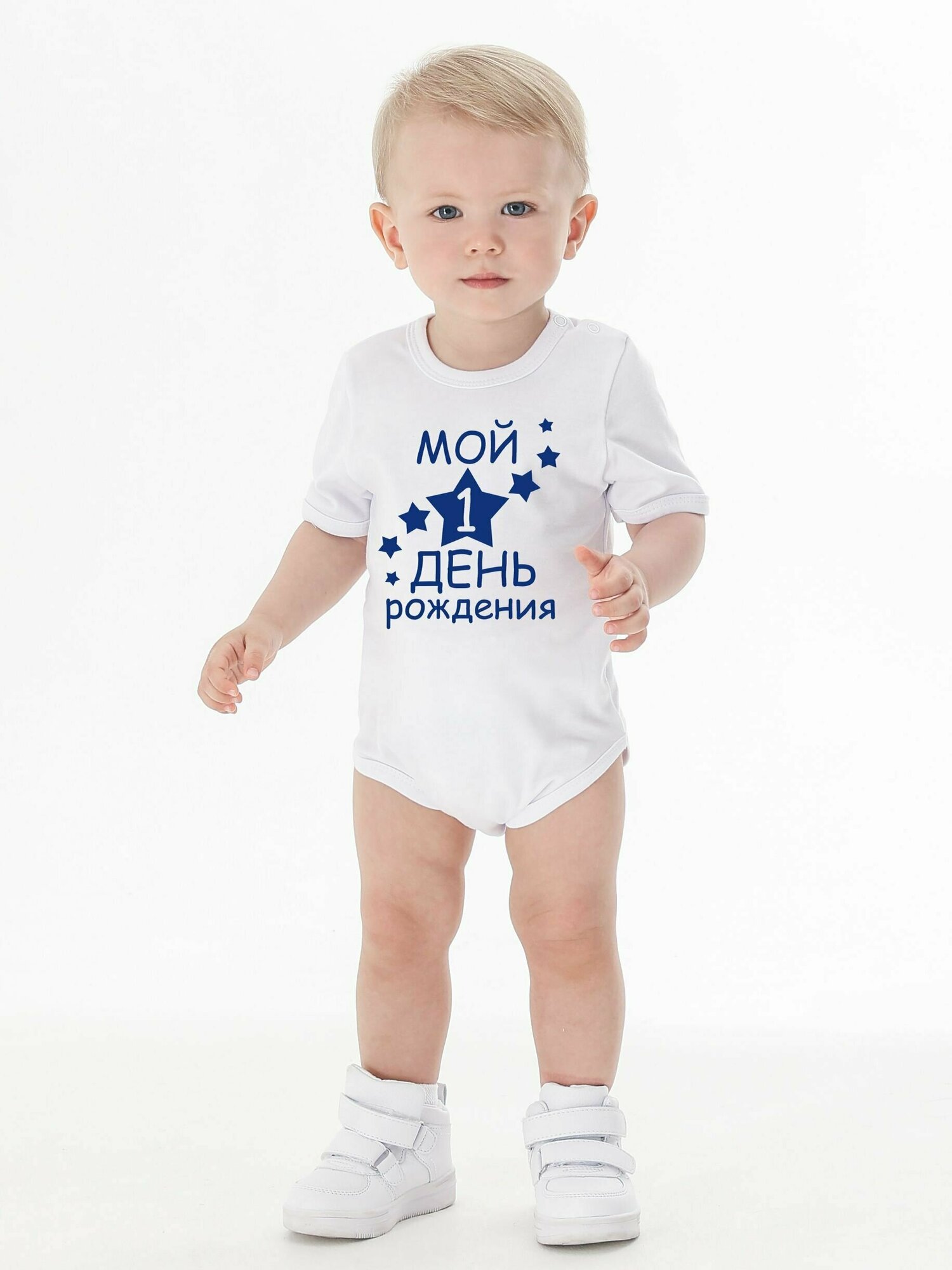 Боди Валерия Мура белый с синим "Мой 1 день рождения", 74