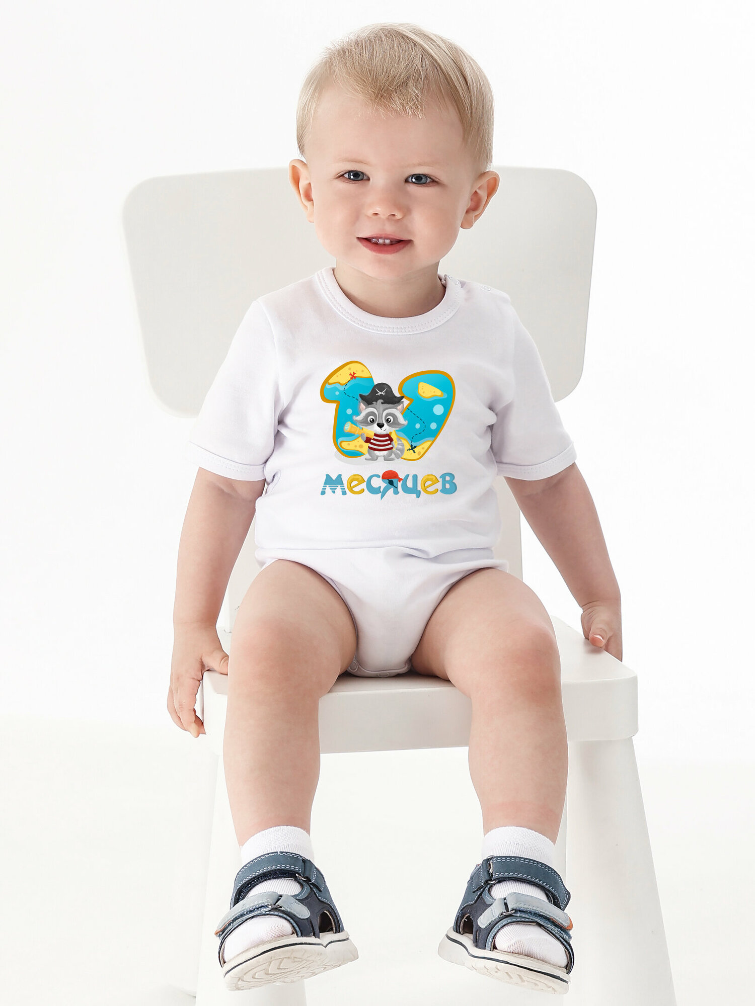 Боди Валерия Мура белый "Пират 10 месяцев", 80