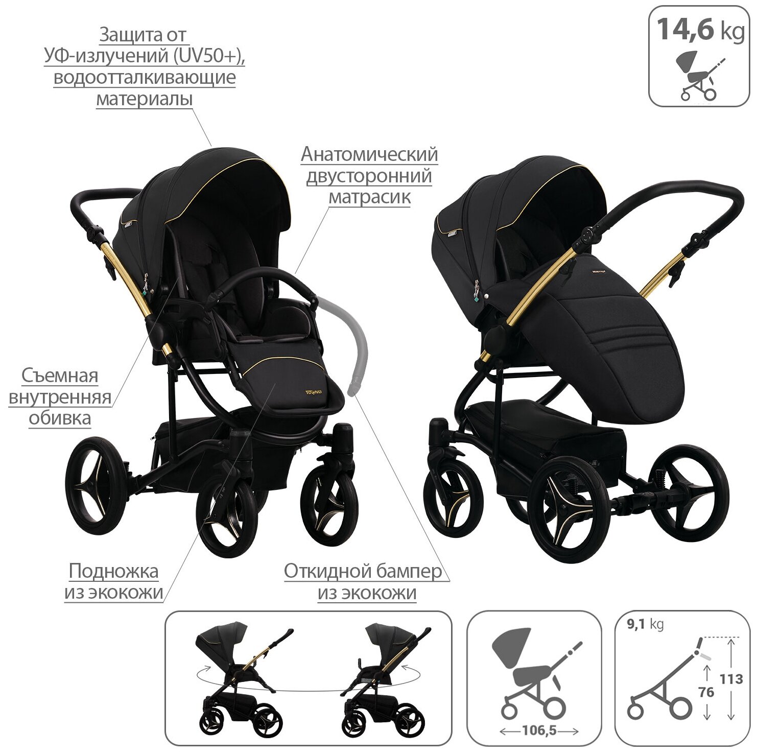 Детская коляска/2 в 1/Bebetto/Torino Si (экокожа+ткань)/SI01/рама золотая