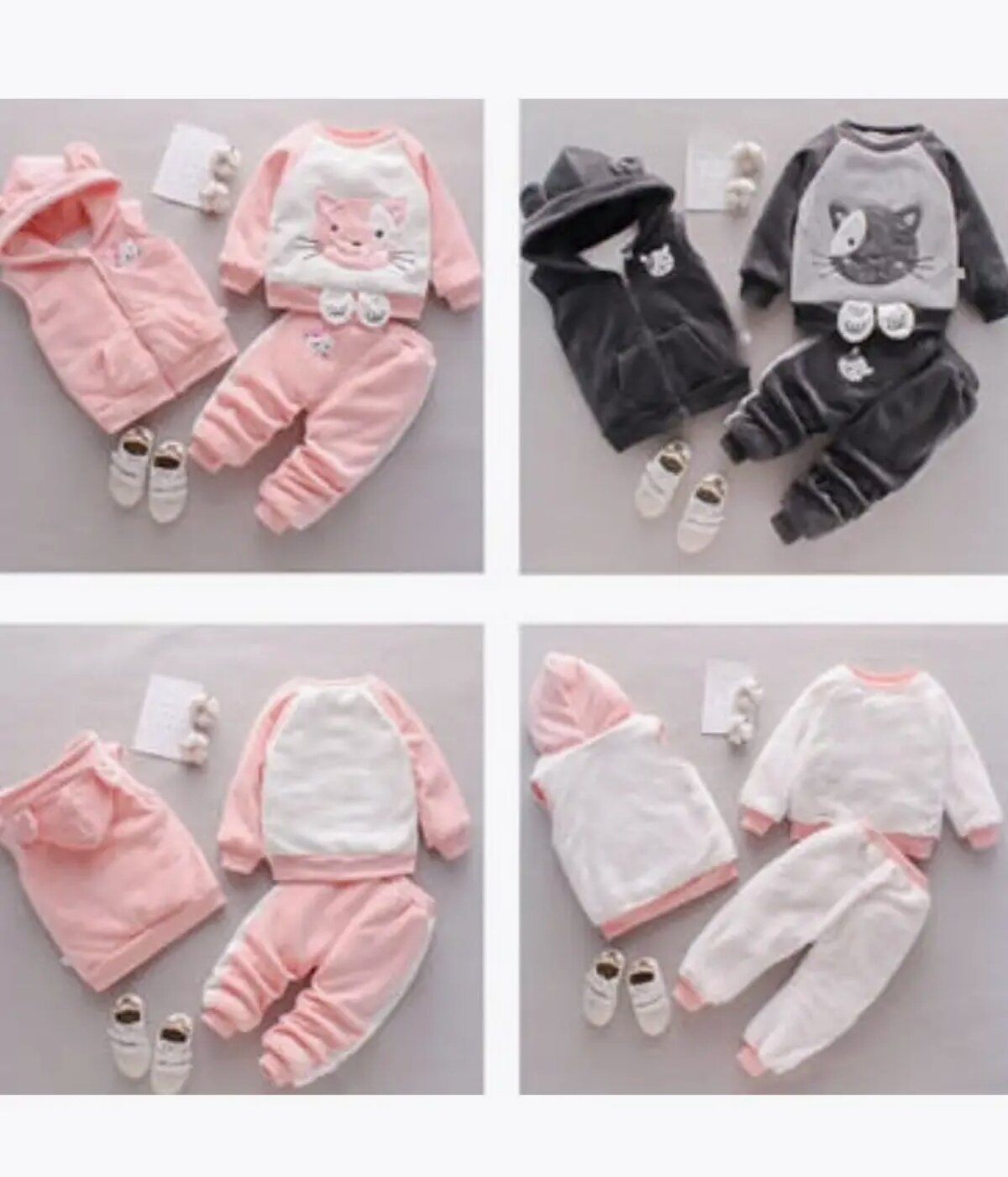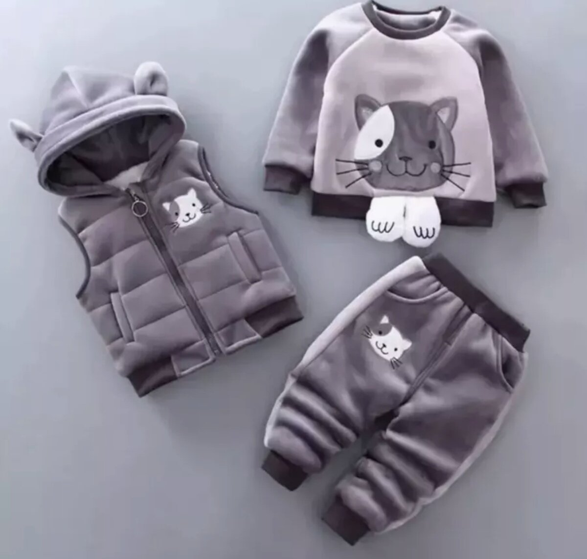 Костюм детский тройка тёплый размер 80, серо чёрный