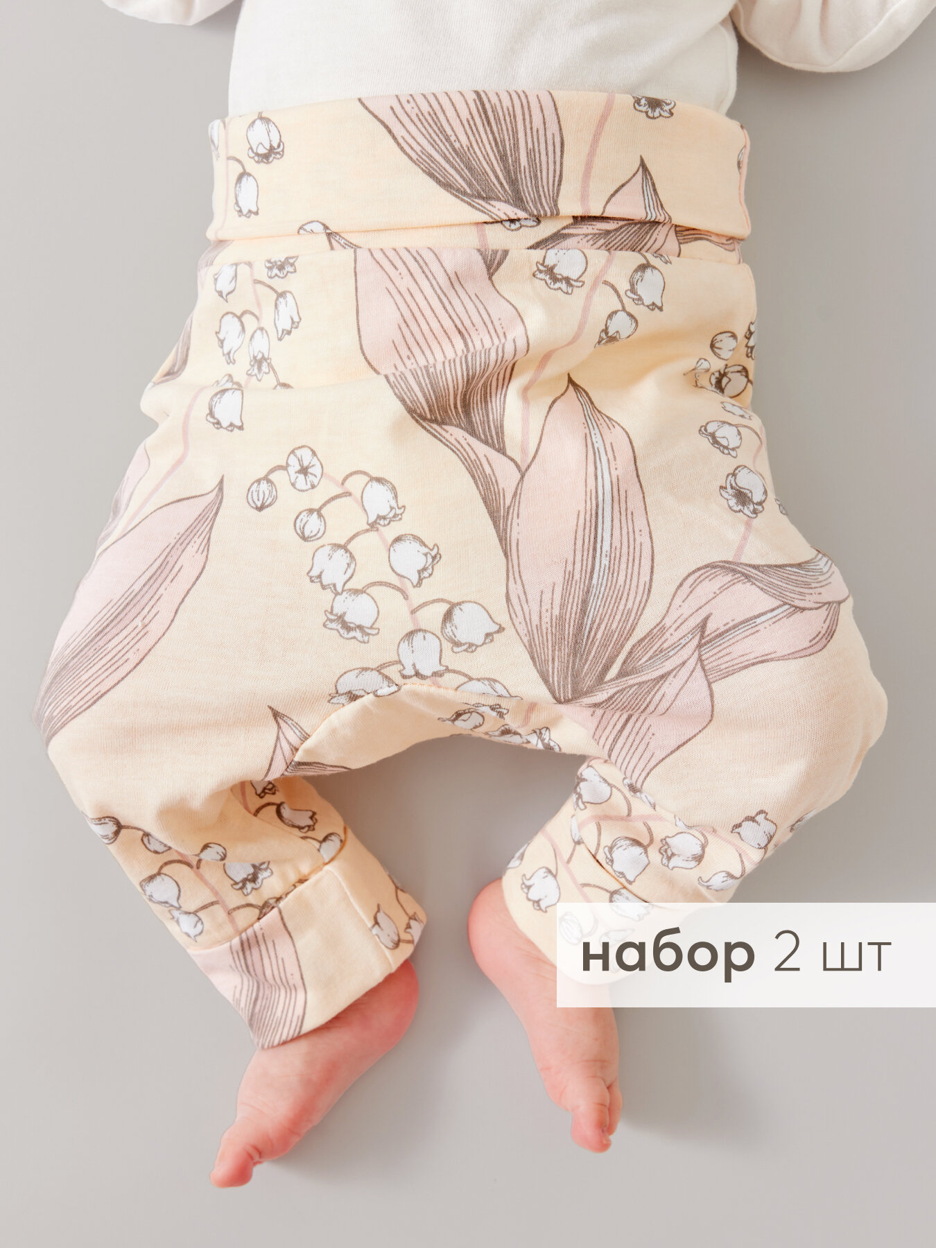 Сохранить90113, Ползунки (штанишки) для новорожденных Happy Baby, для мальчика, девочки набор 2 шт, бежевые с цветами и белые, рост 80 интересное: