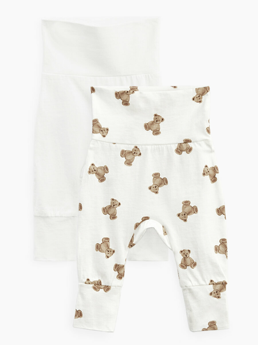 90113, Ползунки (штанишки) для новорожденных Happy Baby, для мальчика, девочки набор 2 шт, белые с мишками и белые, рост 56