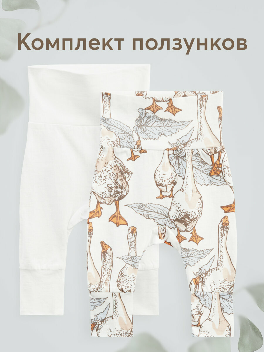 Сохранить90113, Ползунки (штанишки) для новорожденных Happy Baby, для мальчика, девочки набор 2 шт, белые с гусями и белые, рост 68 интересное: