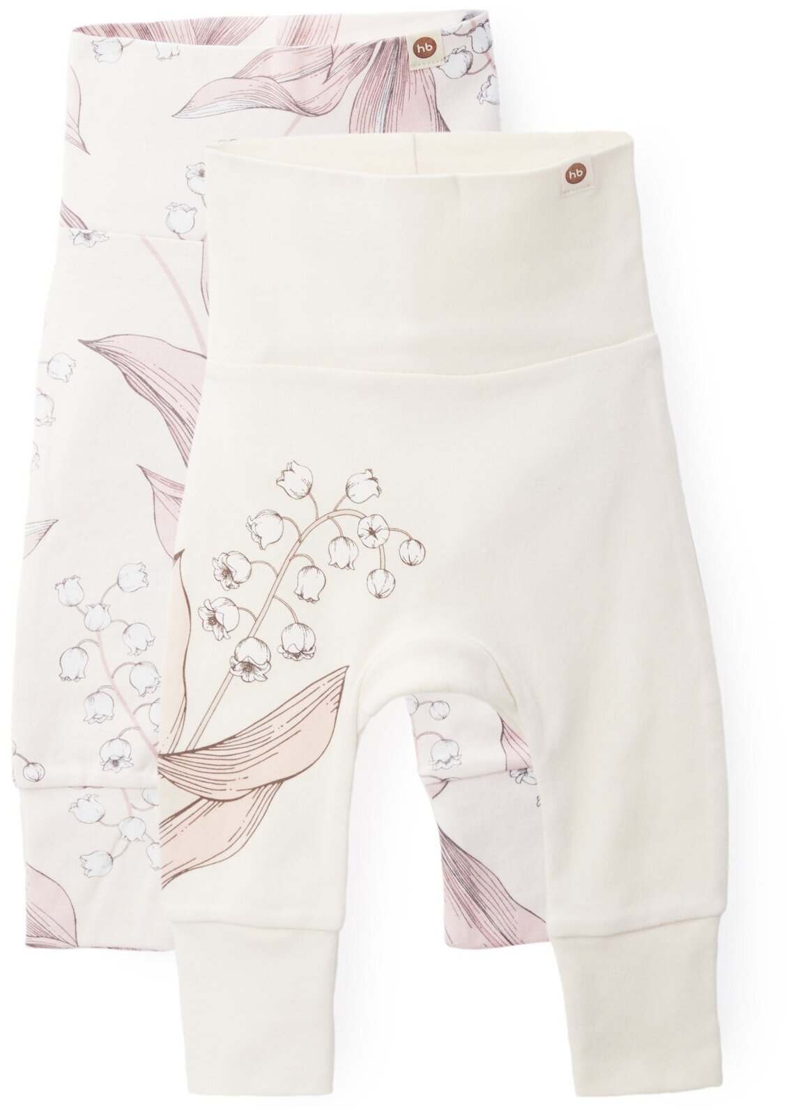90113, Ползунки (штанишки) для новорожденных Happy Baby, для мальчика, девочки набор 2 шт, белые с цветами и коричневые, рост 62