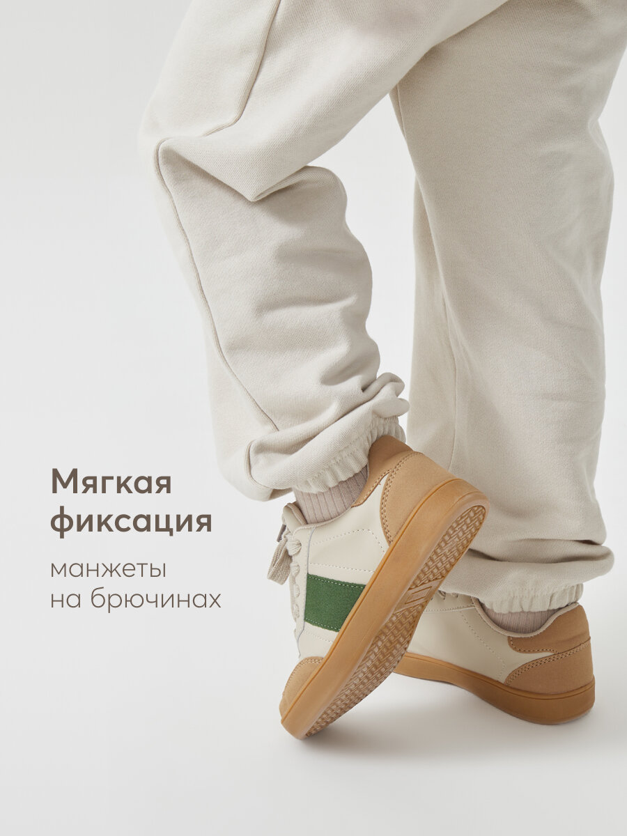 Сохранить88223, Детские брюки Happy Baby, для мальчиков и девочек, с манжетами на брючинах, бежевые, размер 92-98 интересное: