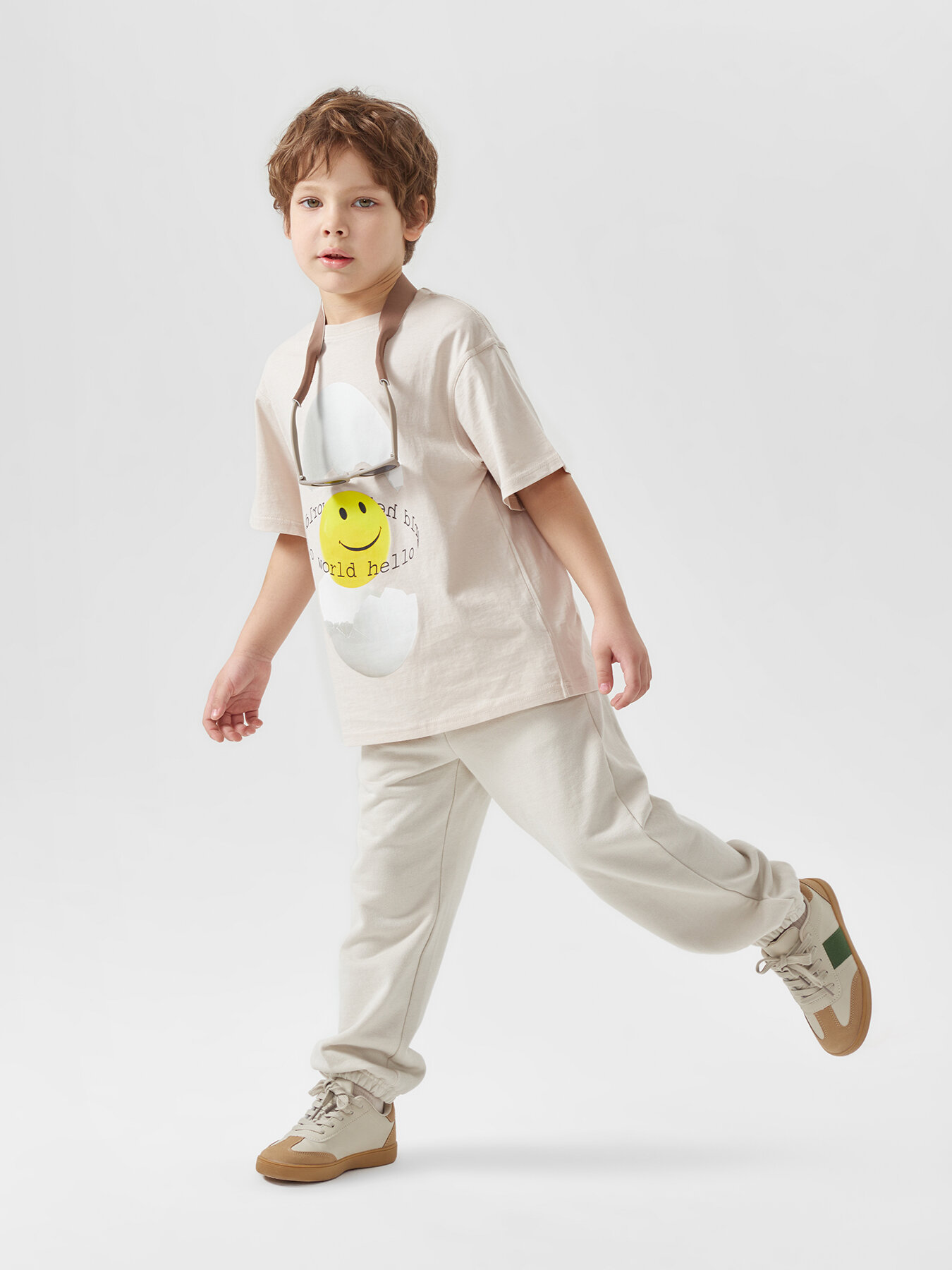 88223, Детские брюки Happy Baby, для мальчиков и девочек, с манжетами на брючинах, бежевые, размер 128-134