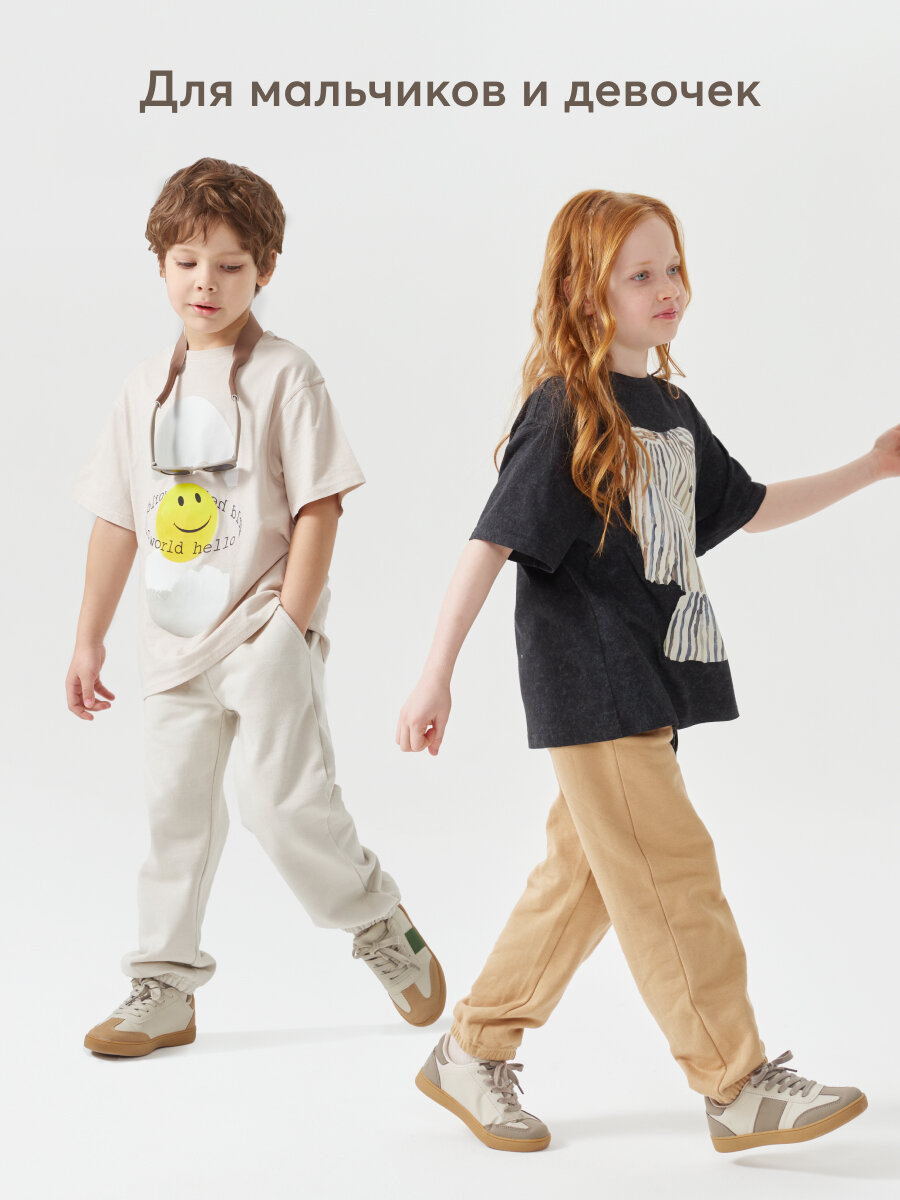 88223, Детские брюки Happy Baby, для мальчиков и девочек, с манжетами на брючинах, бежевые, размер 128-134