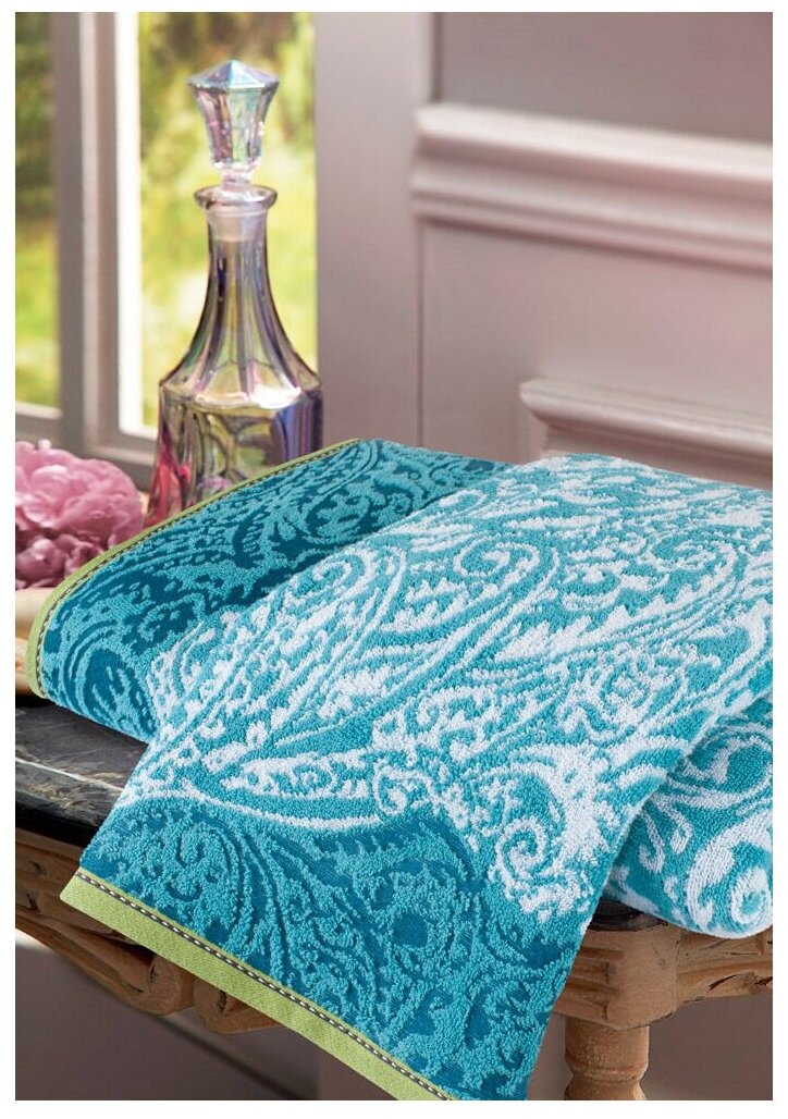 Полотенце махровое Oriental topaz, орнамент, зеленый; размер: 50 х 100