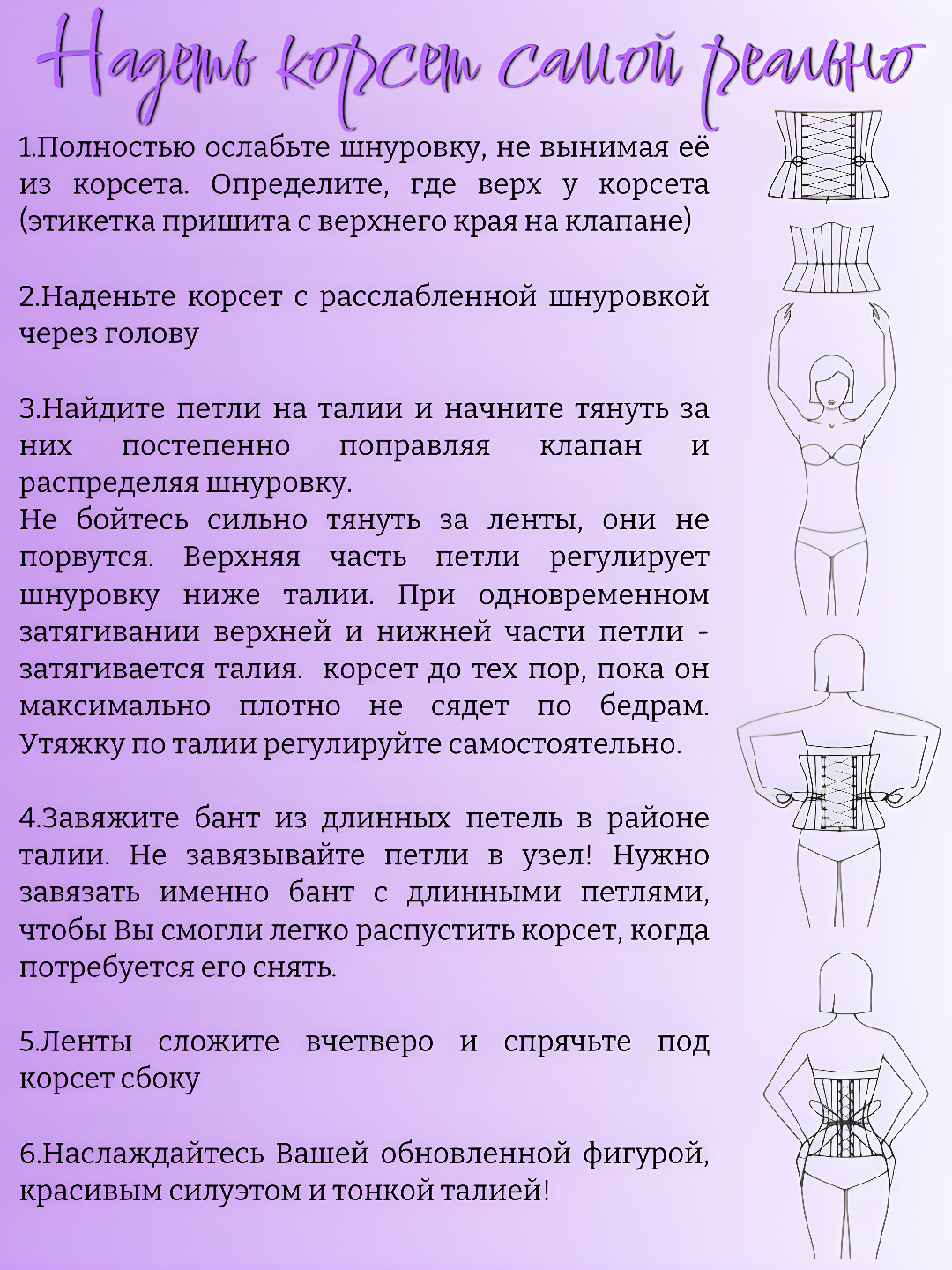 Ниже Вы можете прочитать отзывы на Корсет топ женский вечерний на шнуровке Барби Сирень, ознакомится с подробными характеристиками, посмотреть интересные обзоры и фотографии на Корсет топ женский вечерний на шнуровке Барби Сирень.
