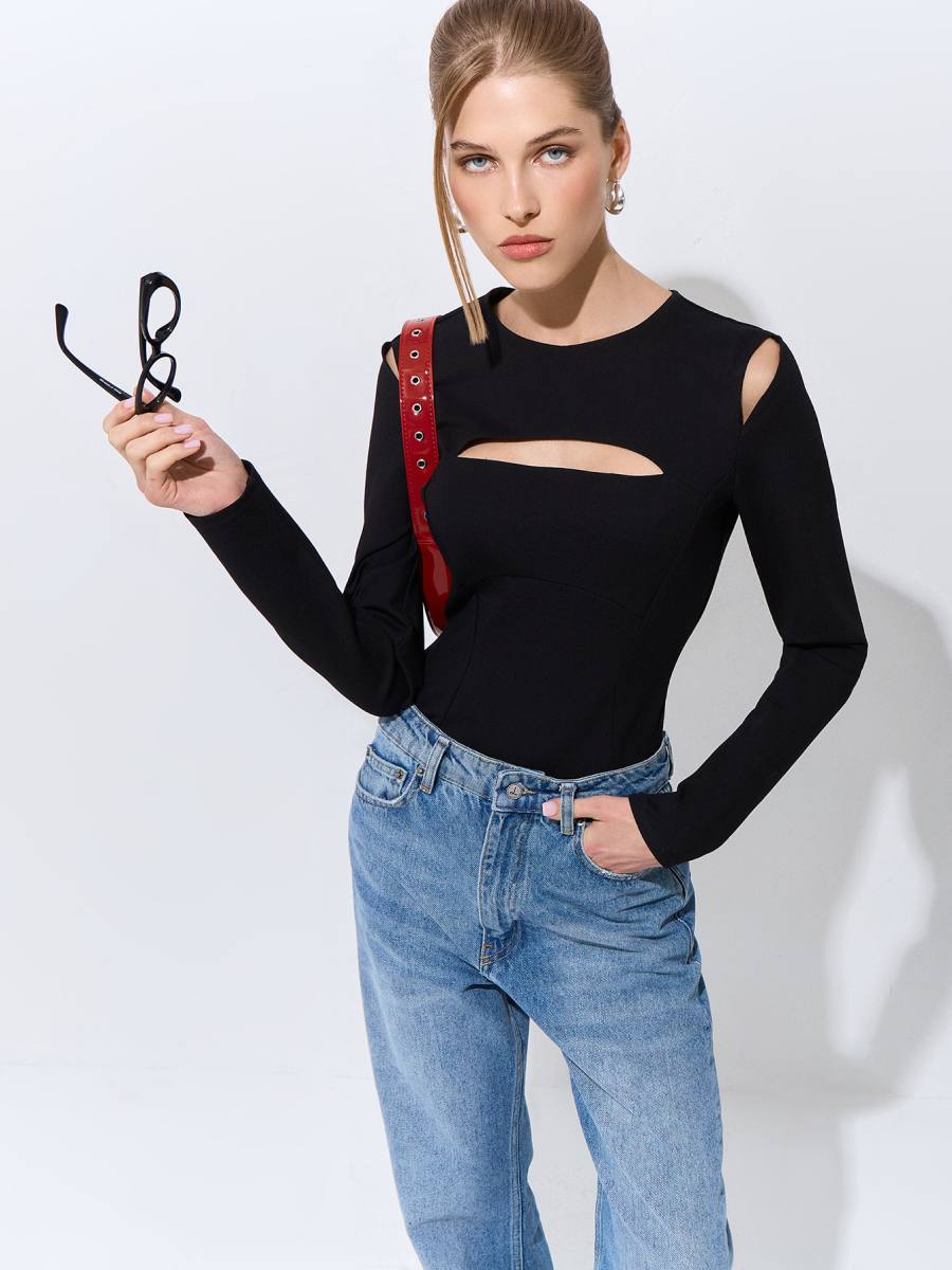 Боди с высоким вырезом бедра и длинным рукавом твое, арт. 102862, черный, S