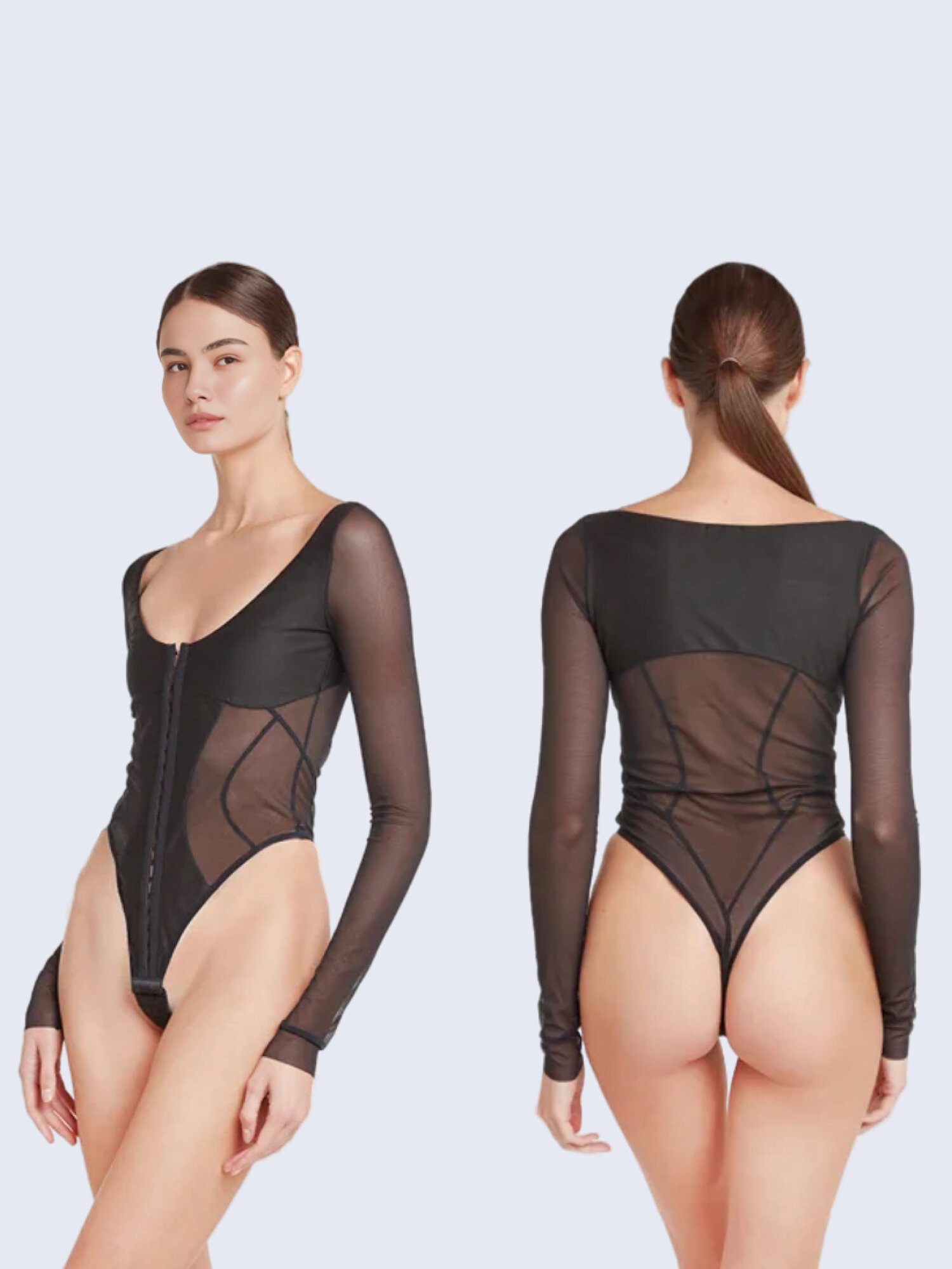 Боди с высоким вырезом бедра и длинным рукавом твое, арт. 102862, черный, S