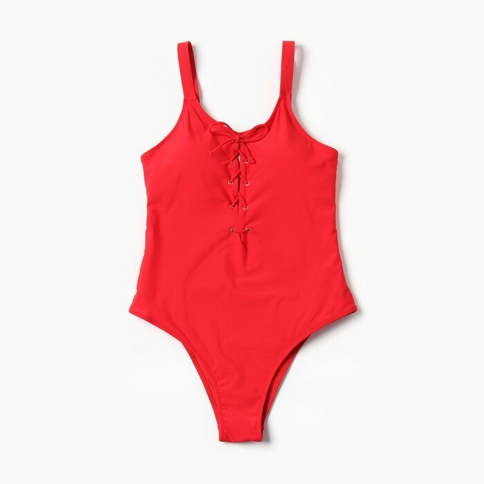 Купальник женский слитный MINAKU на шнуровке, цвет малиновый, размер 48
