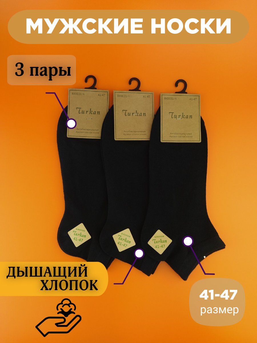 Купить Мужские короткие носки Turkan, 3 пары черные