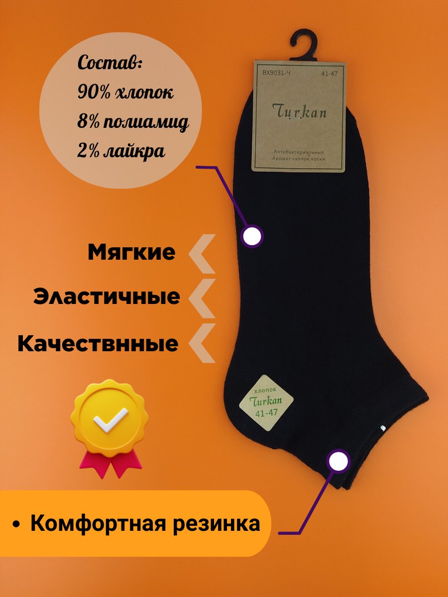 Мужские короткие носки Turkan, 3 пары черные интересное: