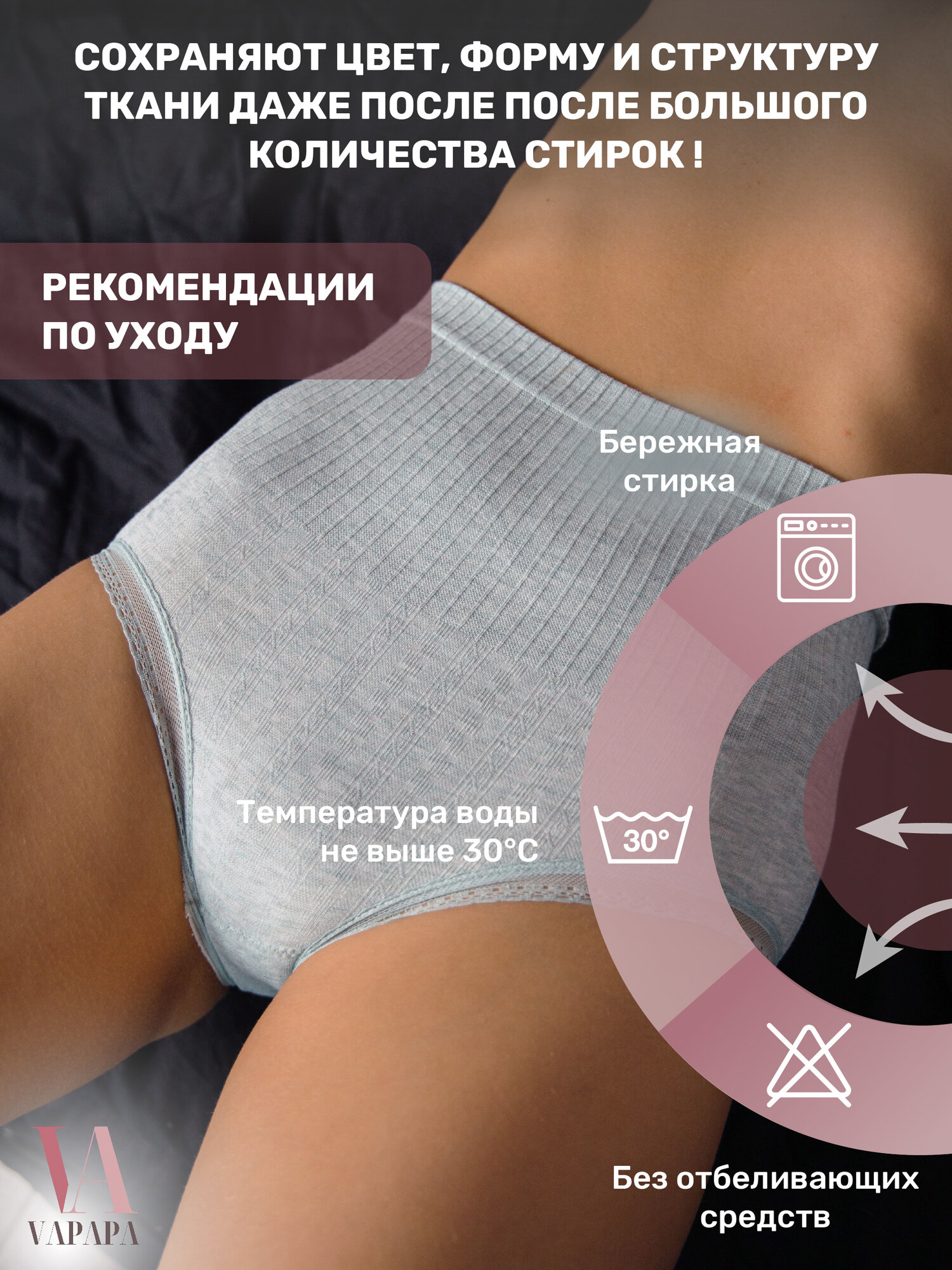 Трусы женские с высокой талией Серые / трусы для беременных хлопок, послеродовое / VAPAPA, 1 шт
