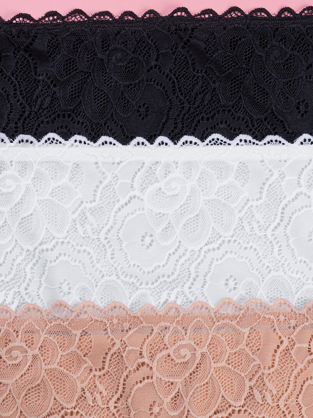 Трусы кружевные набор 3 шт с высокой посадкой HappyFox HF93020 46-48 белый.бежевый.черный