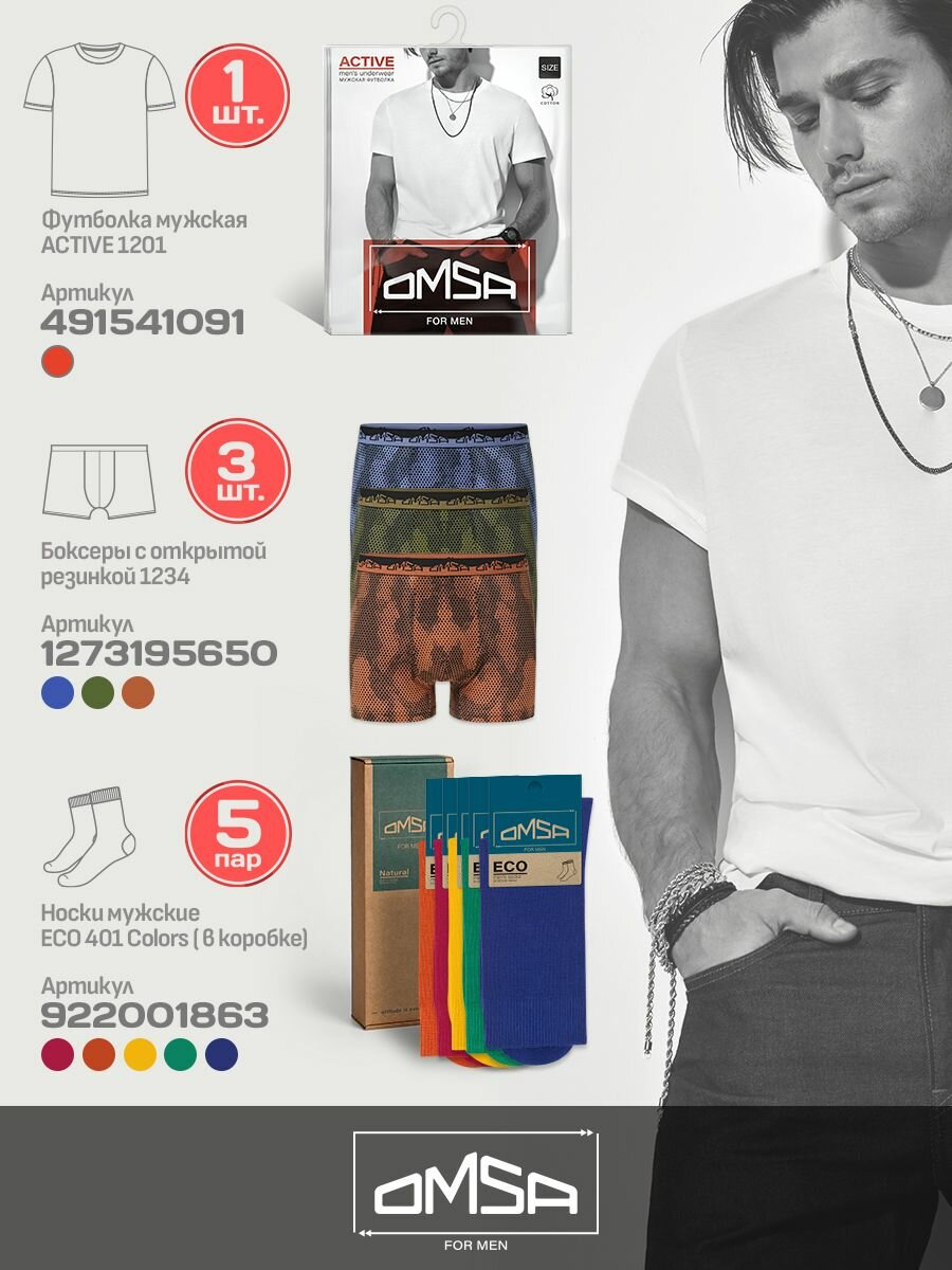 Трусы мужские, набор 3 штуки, трусы OMSA OmB1234 Boxer, хлопковые трусы мужские, трусы-боксеры