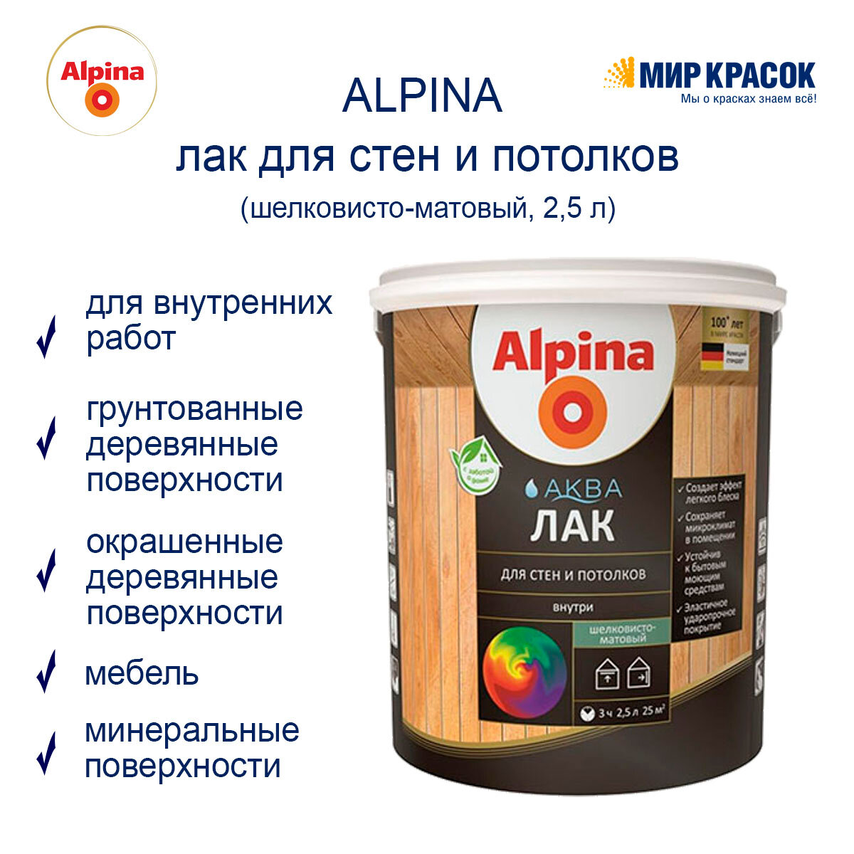 Альпина Аква лак акриловый для стен и потолков глянцевый колеруемый (2,5л) / ALPINA Aqua лак акриловый для стен и потолков на водной основе глянцевый
