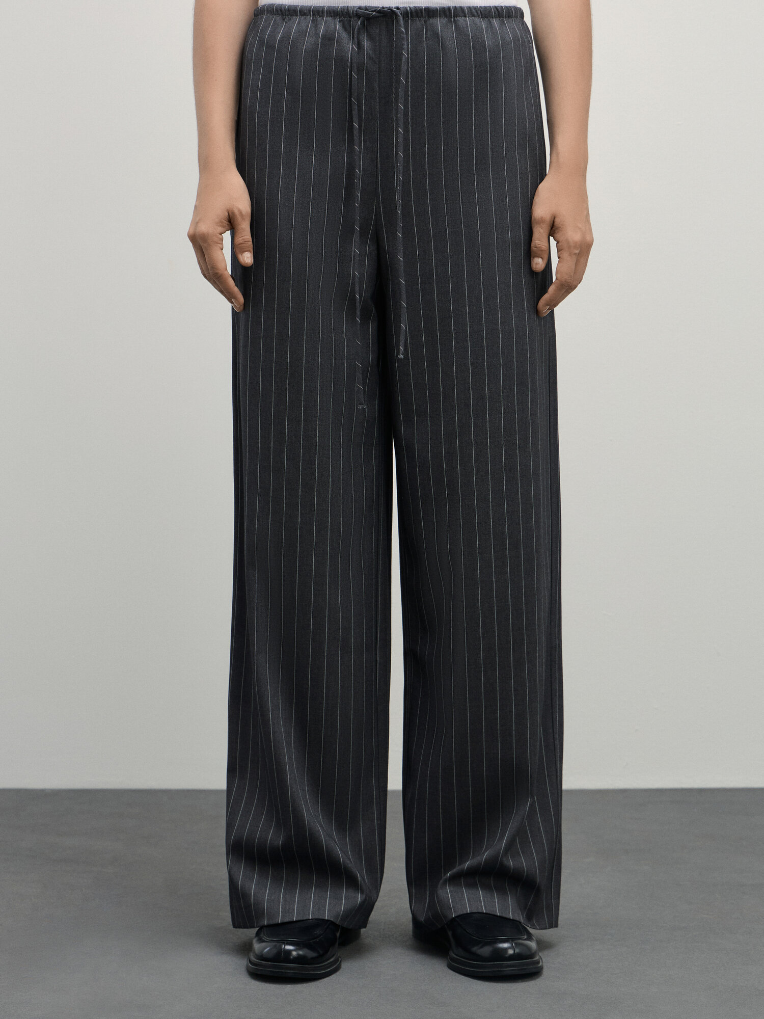 Zarina Широкие брюки на кулиске из смесовой вискозы, цвет Серый меланж, размер 2XS (RU 40), 4328258758E-38
