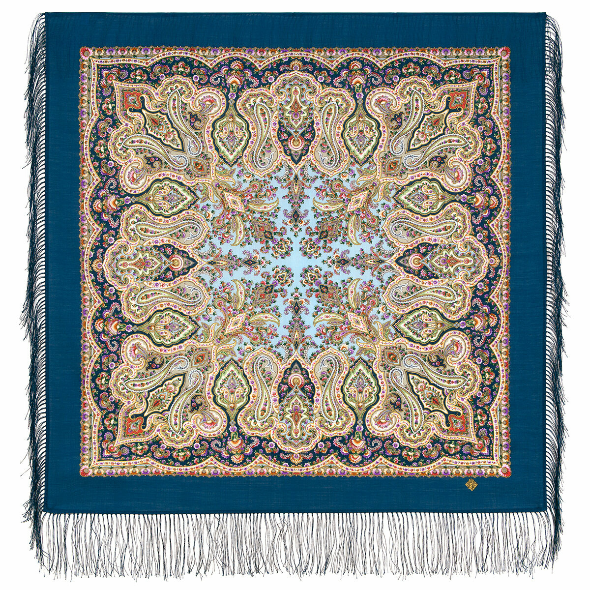 Купить Платок шерстяной Павловопосадские платки Северное лето 14, синий, 89 х 89 см