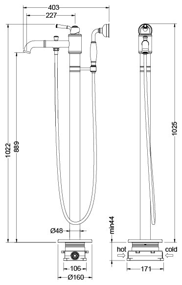 | Высота излива | 889 мм / 1025 мм |