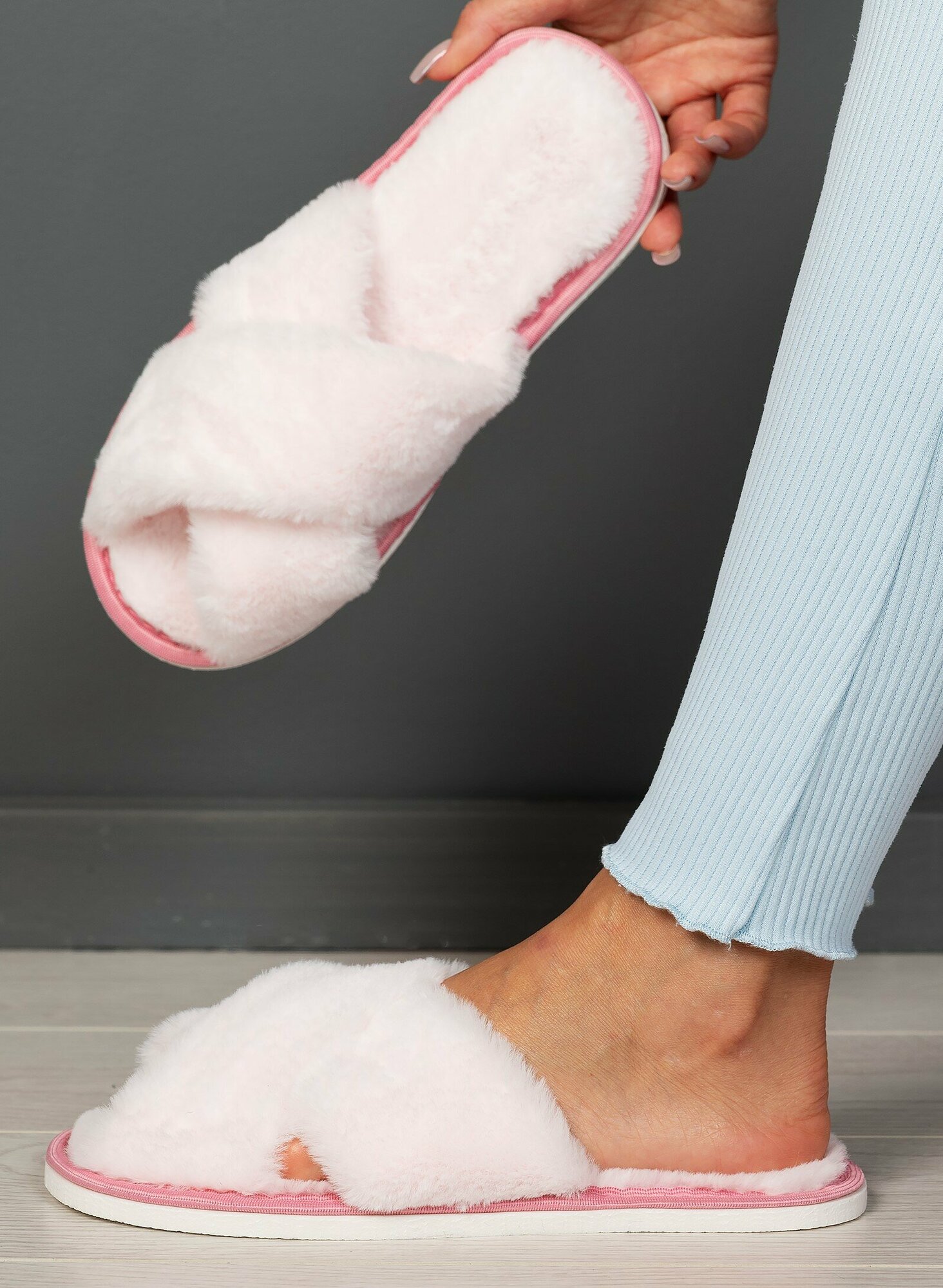 Тапочки TALARIA GOLDEN Тапочки домашние женские меховые крестики, размер 36-37, светло-розовый