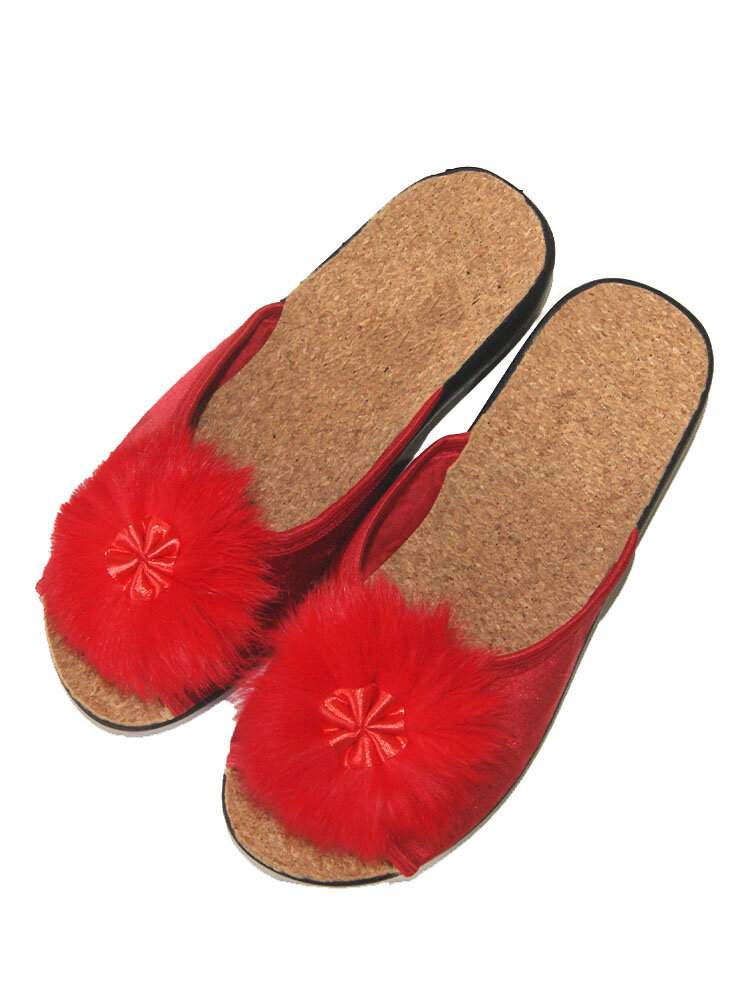 Купить Тапочки домашние женские на каблуке с пушком и пробковой стелькой,красные, 39 размер
